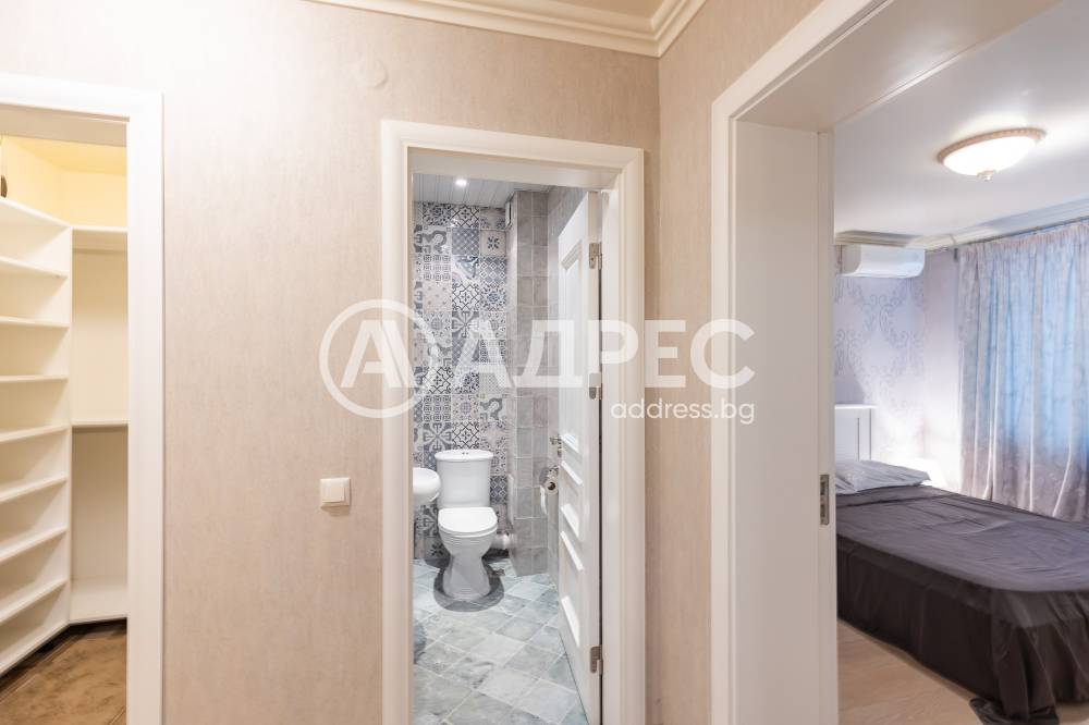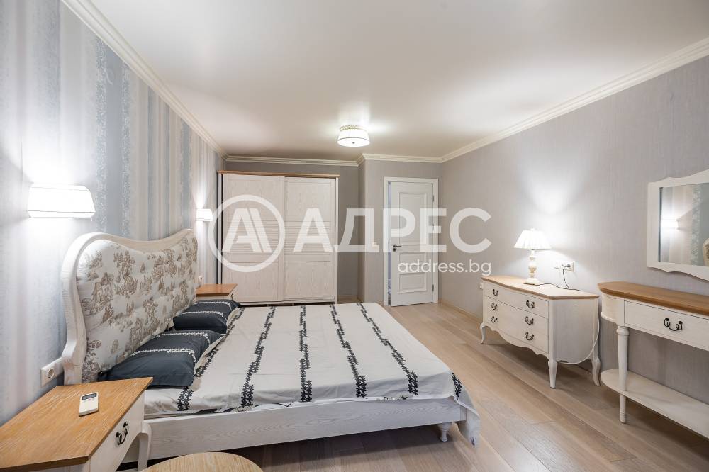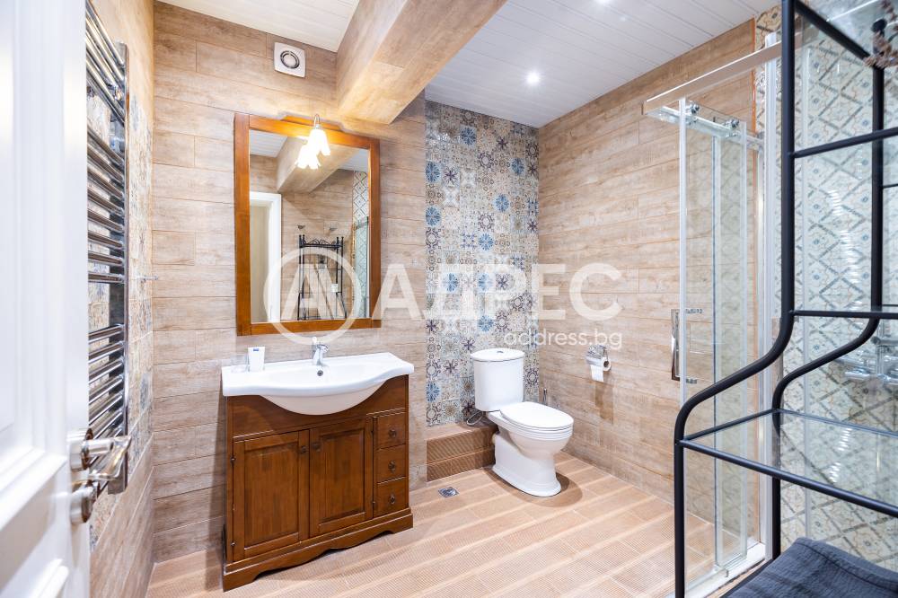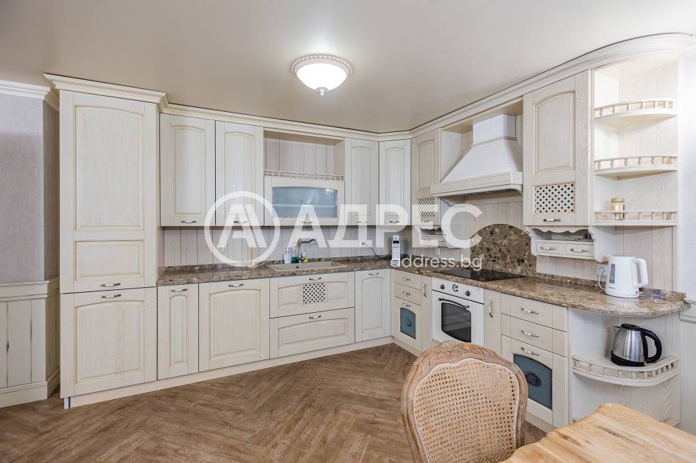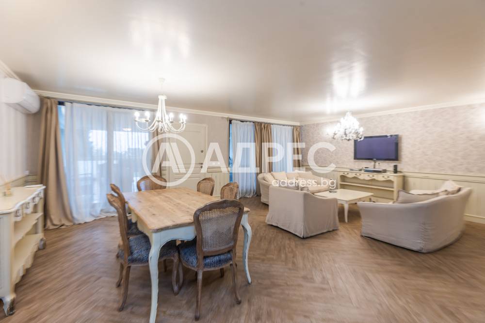 СЪСТОИ СЕ ОТ: голям дневен тракт, съставен от: кухня, трапезария, зона с мека мебел, коридор, перално помещение, гардеробно помещение, баня с тоалетна, втора тоалетна, две големи спални с излаз на тераса-лоджия, лятна дневна с площ от 45.30 кв.м., с лице към градината. Качествено обзаведен и оборудван имот.