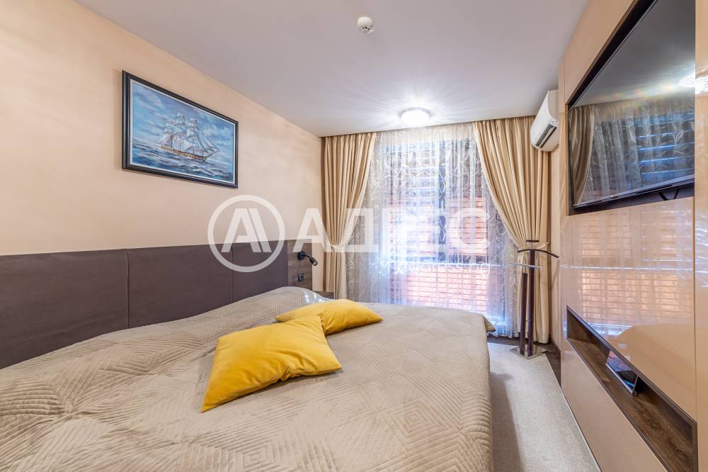 Тристаен апаертамент , в непосредствена близост до резиденция "Евксиноград" . Състои се от прострона дневна с панорамна тераса, две спални - едната от тях със самостоятелна баня и тоалетна. Апартаментът е напълно обзаведен и оборудван с мебели и уреди от най-висок клас.