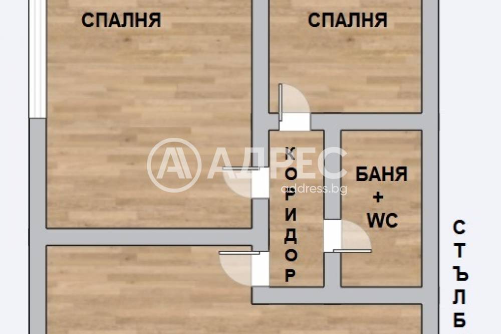 Ет.2-65 кв.м- дневна с две спални, баня и тоалет, тераса.