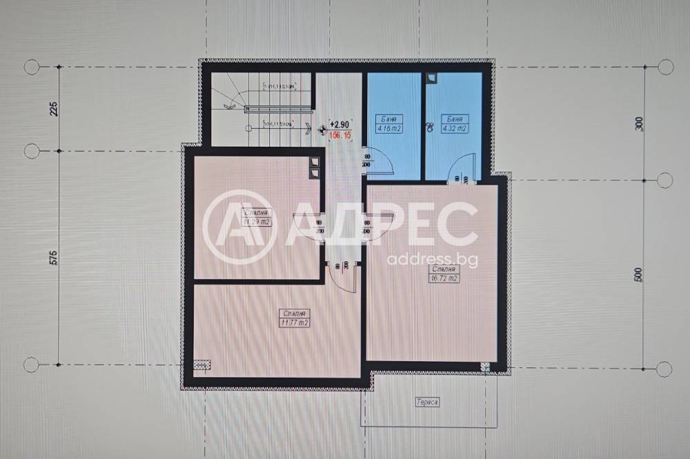 Етаж 2: Три просторни спални, две бани с тоалетни, тераса.