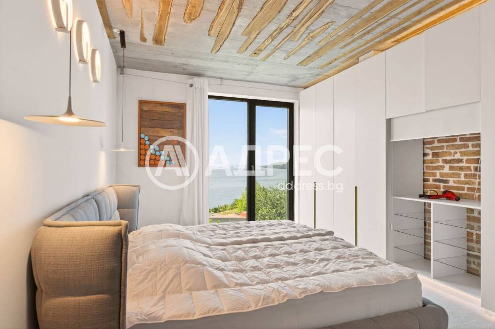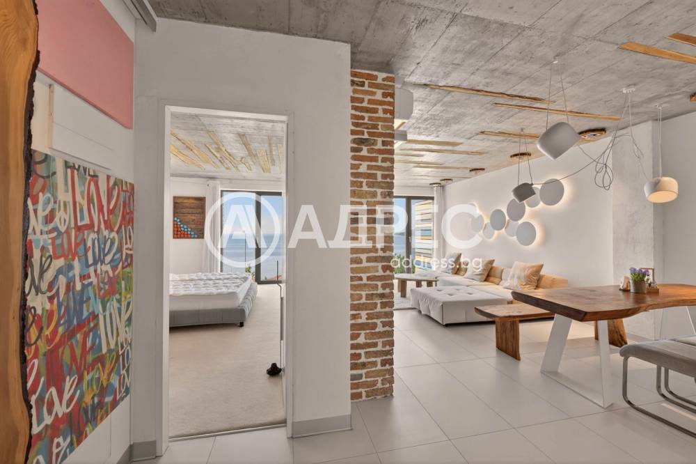 Предлагаме Ви екстравагантен, природо-съобразен и изключително качествено обзаведен, просторен и луксозно завършен двустаен апартамент, с усещане за вила на брега на морето, находящ се в района на м-ст Св. Никола и кв. Бриз. На разположение на бъдещите наематели са: голяма дневна с кухненска част и морска панорама, южна спалня, баня и тоалетна, тераса със спираща дъха морска панорама. Жилището е завършено в модернистичен индустpиален стил, използвайки само най-качественото обзавеждане и електроуреди, съобразени с екологичното равновесие. Инсталирана е система за подово отопление и охлаждане с най-съвременна и енергийноефективна технология, предоставяща оптимално комфортна температура, без облаци прах.