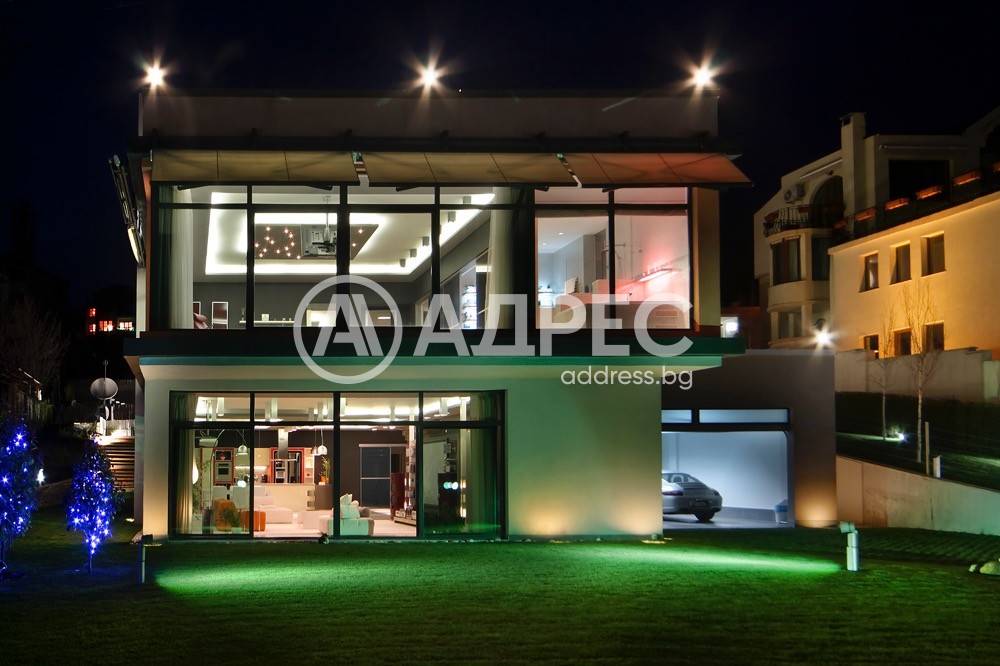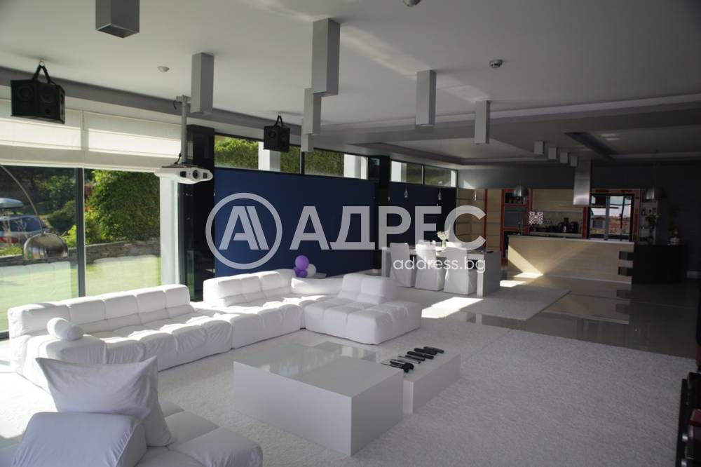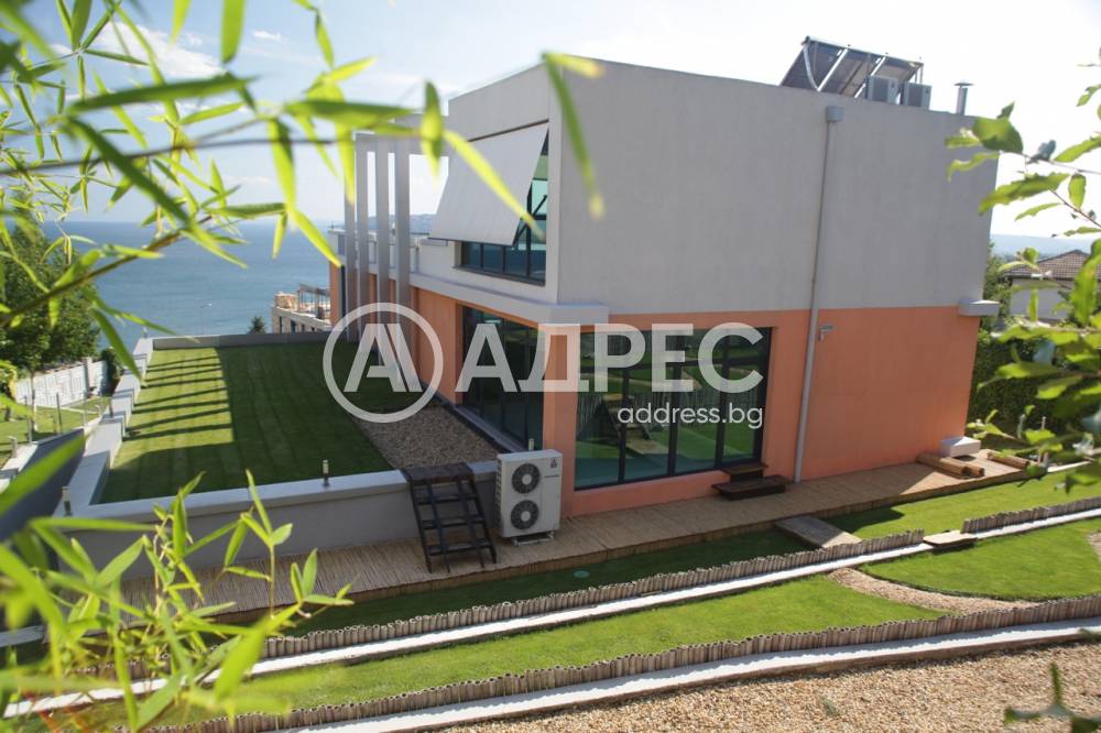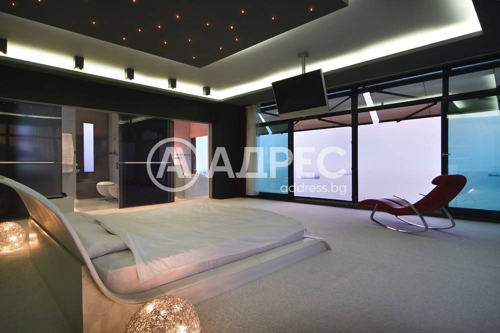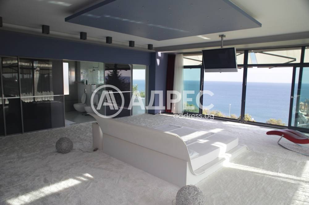Разпределение: Първи етаж: на площ от 120 кв.м е разположена дневна с трапезария и кухня, баня с тоалетна и сервизни помещения. Втори. етаж: родителска спалня 80 кв.м с нескриваема морска гледка, баня с вана и гардеробна; три спални, всяка от които е със самостоятелна баня и санитарен възел. Трети етаж: фитнес зала и грандиозна тераса. Къщата е с просторен, добре поддържан двор с кът за сядане. В цената е включена такса за градинар и периодично почистване ВЪЗМОЖНОСТ ЗА КРАТКОСРОЧНО НАЕМАНЕ.