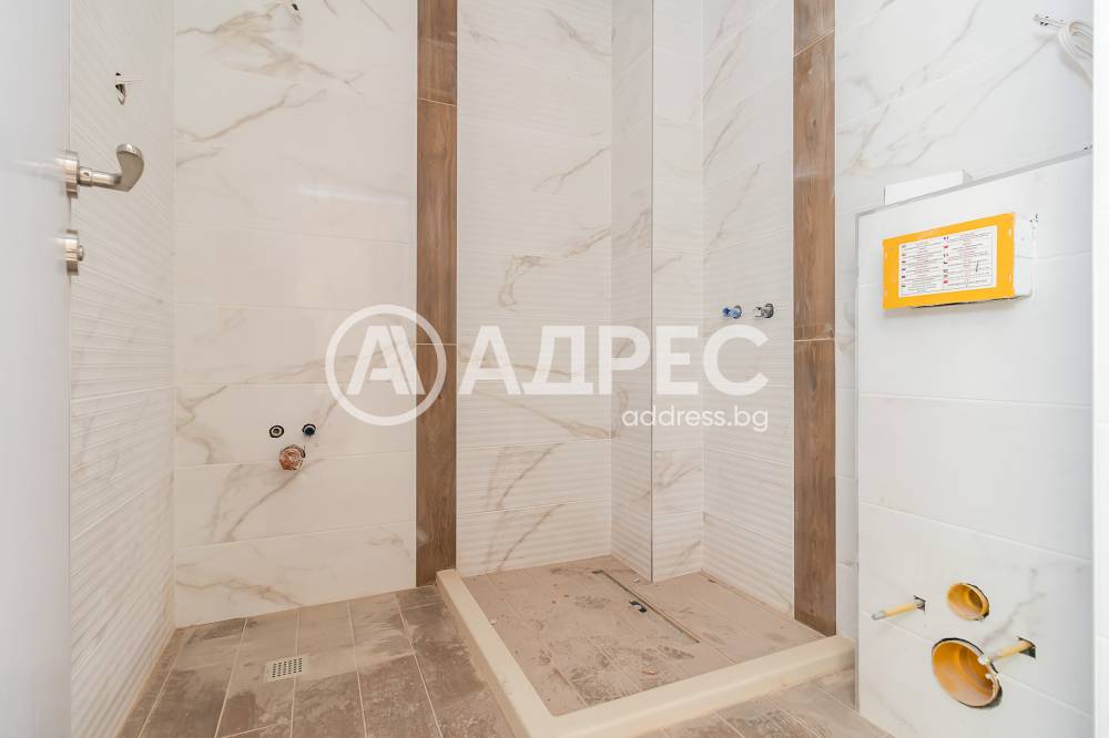 Тухлена сграда със завършени бани и поставени интериорни врати. Има изградена асансьорна клетка, но няма поставен асансьор.