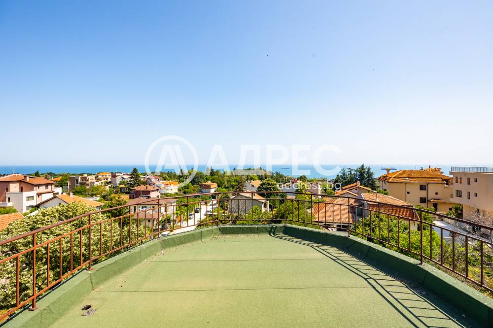 Само от Адрес! Представяме Ви самостоятелна четириетажна сграда, разположена в собствен парцел в престижния и живописен район местност "Долна Трака". На обща разгъната площ от 813 кв.м са разположени два тристайни и два многостайни апартамента, по един на всеки етаж. Жилищата са изцяло обзаведени и оборудвани. На ниво полусутерен в сградата е изграден СПА център, който разполага с басейн, сауна, зона за релакс. Дворното място е равно, с правилна форма и площ от 867 кв.м. От панорамната тераса се открива красива морска гледка. Имотът е подходящ за развиване на бизнес и туризъм или за собствено ползване.