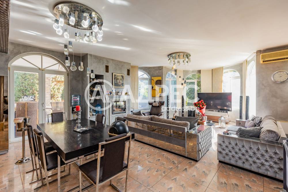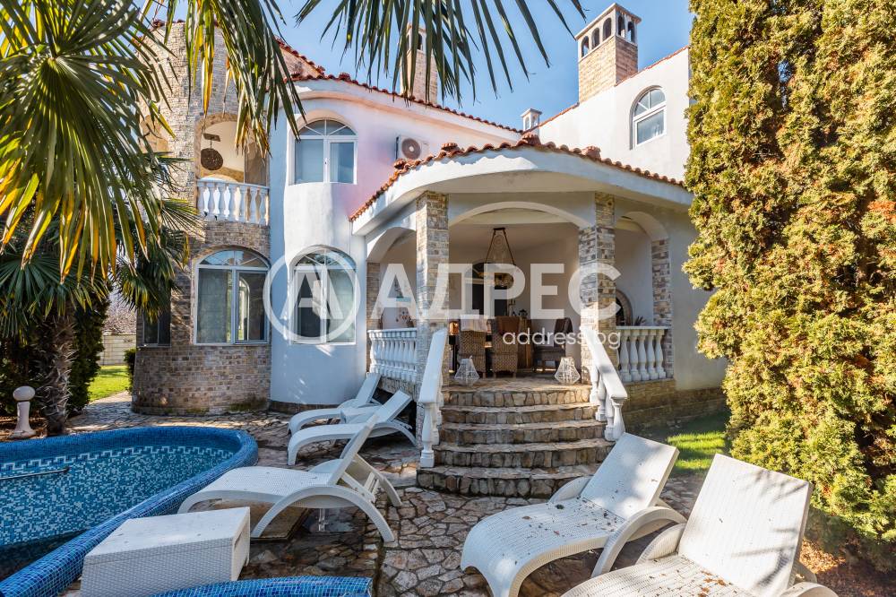 Прекрасна къща с големи стаи, дневен тракт, има сауна, джакузи и прекрасно озеленен двор с басейн.
