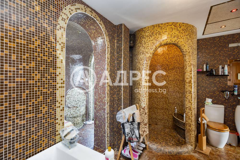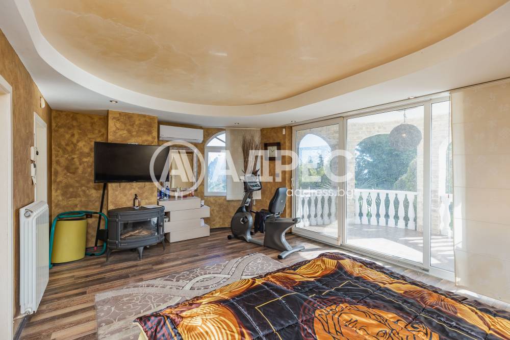 Втори етаж - две просторни спални с френски прозорци и голяма тераса с изглед към градината и басейна. От родителската спаня се влиза в голямо помещение оборудвано със сауна, пейки за почивка, баня с тоалет и се излиза на голяма тераса към другата част на двора. Детската стая е голяма с баня и тоалет.