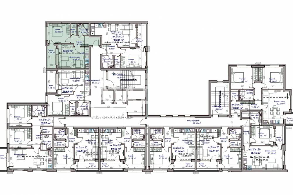 Всяко тяло със самостоятелен вход и по 2 или 3 асансьора за удобство на живущите.