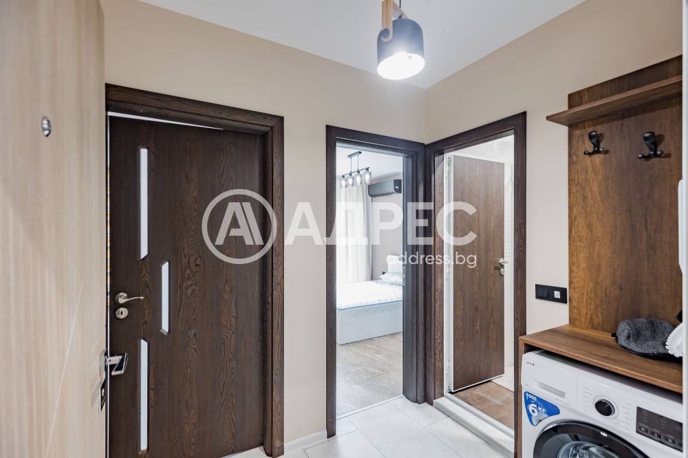 Чисто нов прекрасен двустаен апартамент в чисто нова сграда от висок клас, напълно, луксозно обзаведен. Към апартамента има ПАРКОМЯСТО включено с цената. Хубав, голям дневен тракт с кухненски бокс, трапезарна и холова част. Спалня с голямо легло и гардероб, излаз към обща тераса. Коридор и обща баня с тоалет. Без домашни любимци.