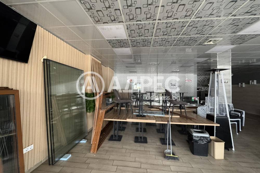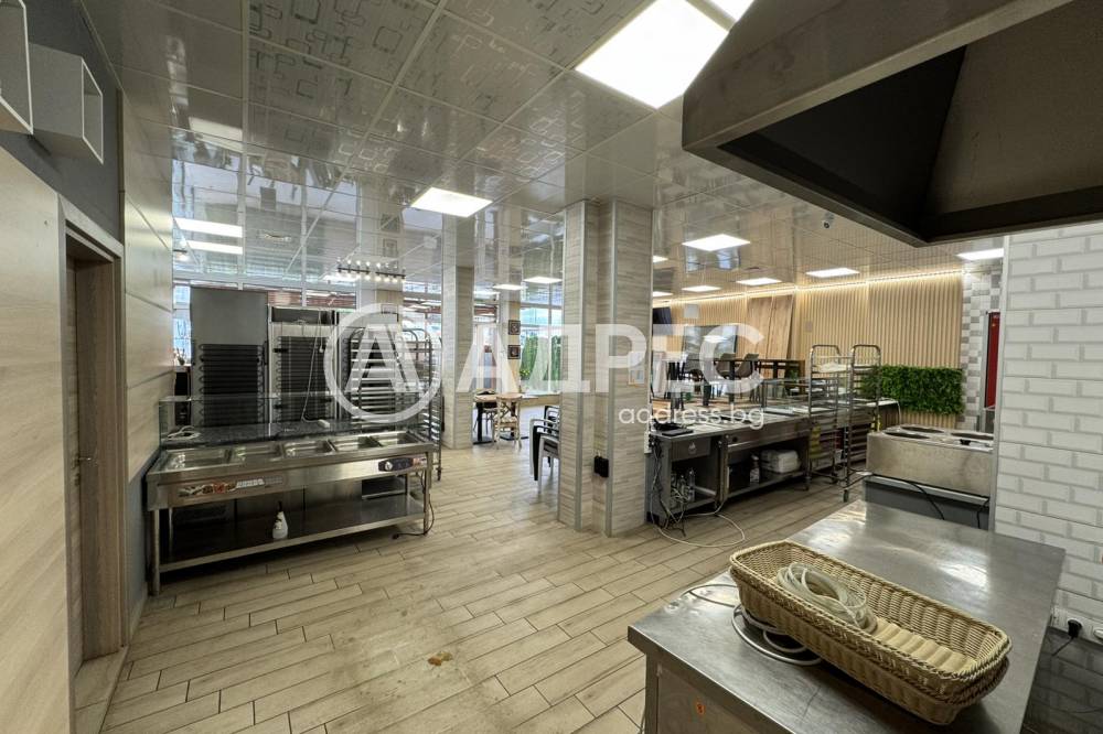 Ресторант 270кв.плюс тераса 50 кв. Изцяло на партер.с всички необходими документи.Оборудван нов . Кухня 120кв.зала 150кв.Подходящ за Пицария Кафе сладкарница.Аптека. Детска градина.Фитнес зала.Козметичен Център.