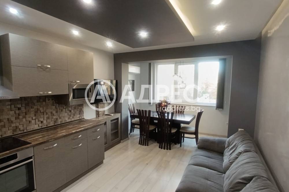 Напълно обзаведен тристаен / преустроен на многостаен / апартамент със застроена площ от 97.72 квадратни метра, състоящ се от дневен тракт с оборудвана кухня, ТРИ спални, коридор, баня, тоалет, гардеробно помещение, тераса. Жилището е топло и слънчево,с изложение изток - запад, има простронство около блока.