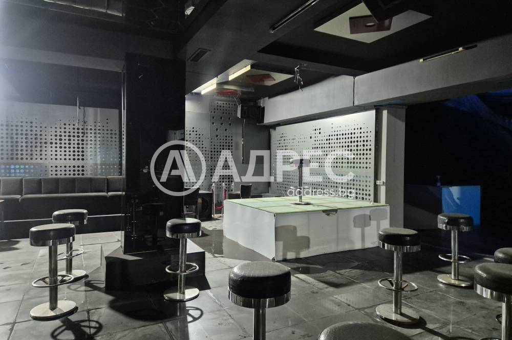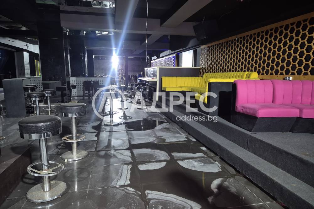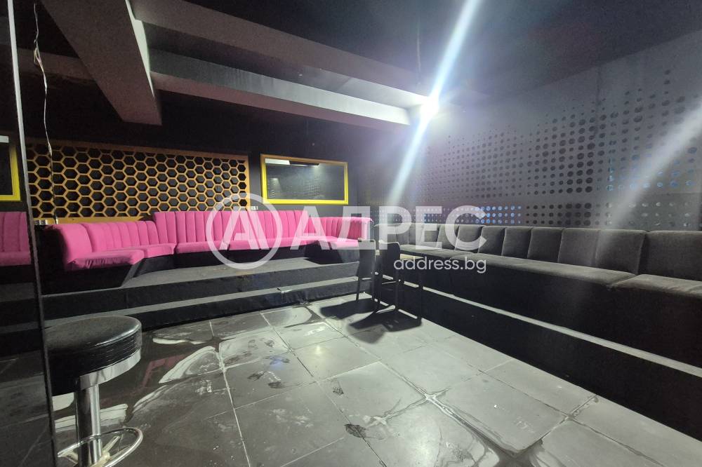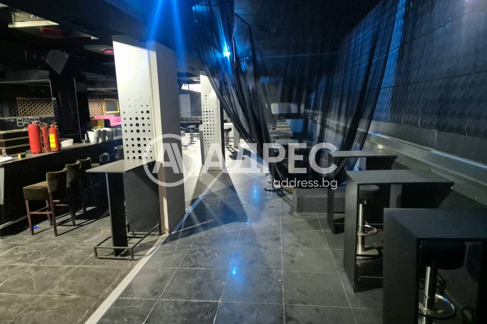 Нощен бар в Централната част на града. Помещението се предлага обзаведено, като се състои от зала със сепарета, бар зона, място за DJ, мъжка и женска тоалетна, помещение за персонала. Вентилация и климатизация. Възможност да се наеме допълнителна площ около 270 кв.м., като втора зала. До скоро е функицонирало като нощно заведение.