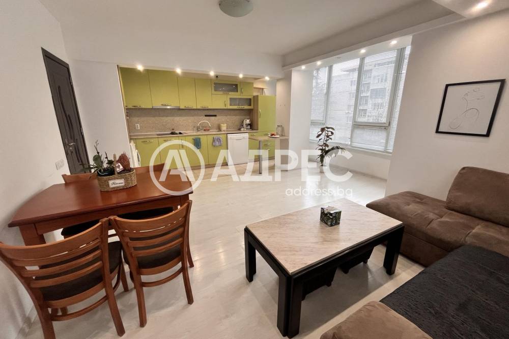 Предлагаме Ви тристаен, обзаведен апартамент. Жилището се състои от просторна дневна с кухненска част /вградена кухня - бяла техника/, две спални - родителска и детска - напълно обзаведени. Баня с душ кабина. Тоалетна. Остъклена тераса. Подходящо за семейство. Два климатика.