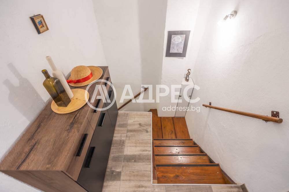 - на първо ниво са обособени входно антре, дневен тракт с кухненски бокс, баня с тоалетна;