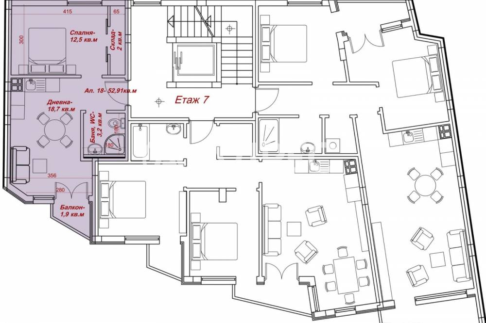 Апартамента е с височина от 4.80 м , което позволява преустройство в тристаен имот, тип мезонет!