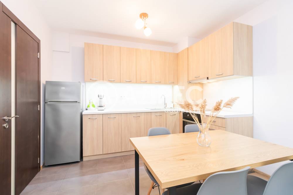 В района на Синия пазар, близо до спирки на градския транспорт, магазини и заведения.