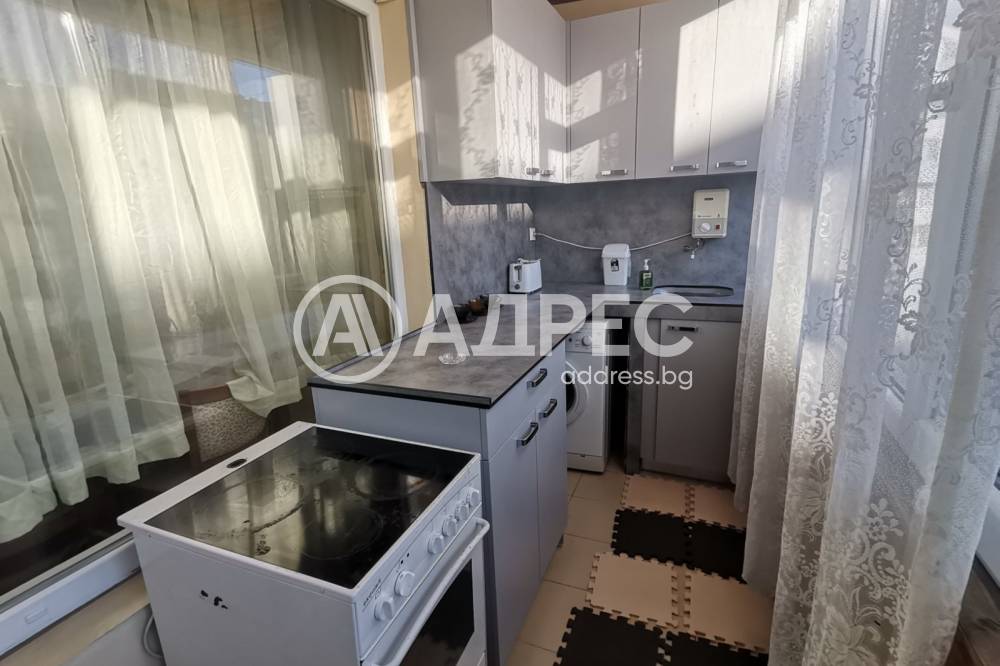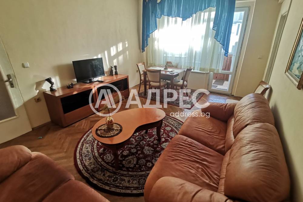 Южен, преустроен апартамент, състоящ се от хол с изнесен кухненски бокс на остъклената тераса към него, преходна родителска спалня, втора по-малка стая, подходяща за детска стя или кабинет с тераса към нея, коридор, общ санитарен възел. Жилището е изцяло обзаведено, с необходимите електроуреди и мебелировка. Отоплява се с климатик. Депозит в размер на 600 евро.