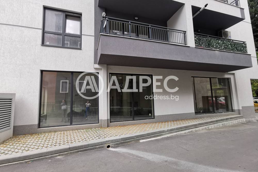 Партерен магазин в нова жилищна сграда. Магазинът разполага с два входа, витрини към оживена улица. Правилна форма, колони, в единият край е разположен санитарен възел/малък склад.