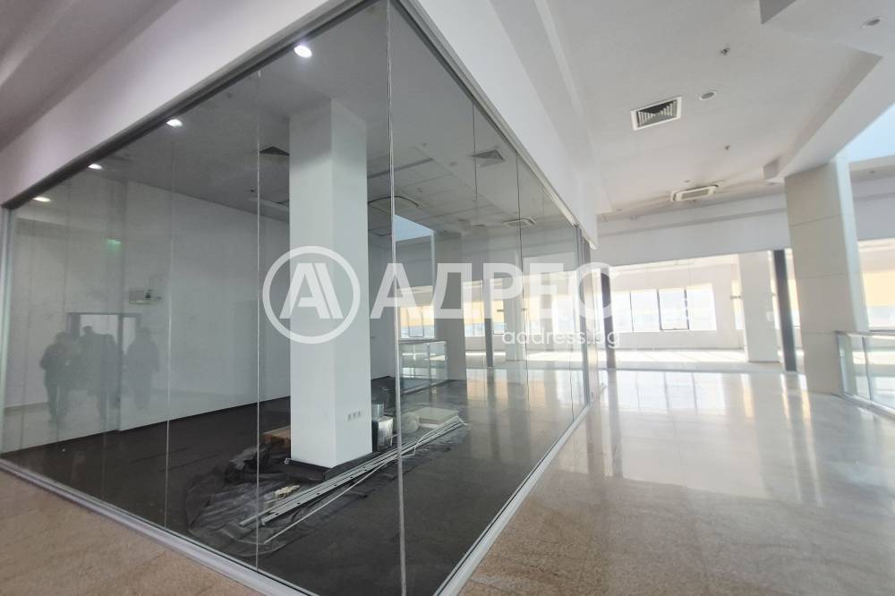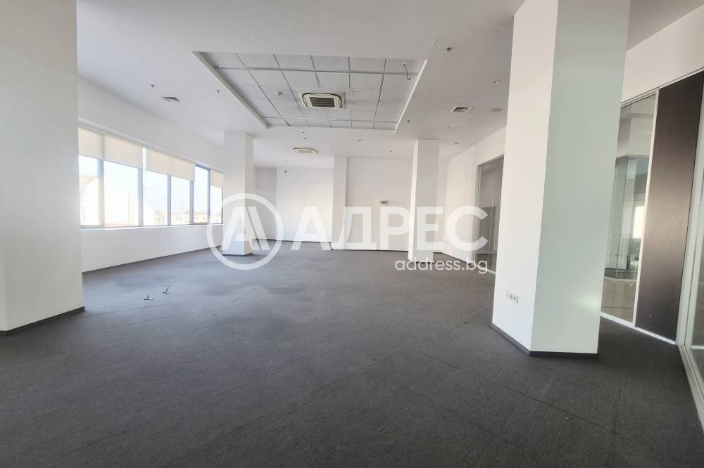 Просторно офис помещение в бизнес сграда клас А. Представлява няколко помещения разделени към момента. Климатизирано. Двоен под. Високи тавани. Естествена дневна светлина. Самостоятелен офис подходящ за кол център. Наемната цена е без ДДС. Изискват се два депозита.