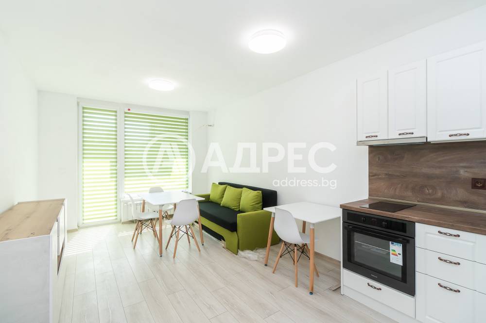 Отдаваме под наем двустаен апартамент, напълно обзаведен и оборудван. Състои се от дневна с кухня - мека мебел, бяла техника вкл. съдомиялна. Спалня с голямо легло, скрин и гардероб. Баня с тоалет. Мокро помещение с пералня. Две тераси. Отоплението е с климатик и ТЕЦ. Паркомясто.