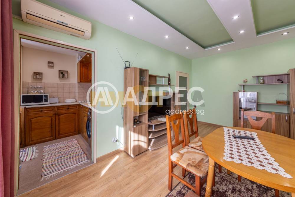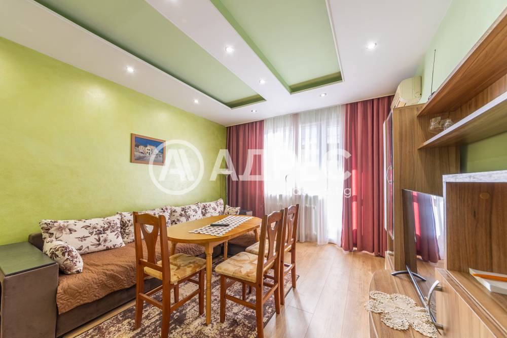 Тристаен, южен апартамент, разположен на четвърти етаж в 8-етажна панелна сграда. Жилището се състои от коридор, просторен хол с тераса, кухненски бокс с трапезария с излаз на тераса, две спални, едната с тераса, баня, тоалет и килер. Апартаментът се предлага напълно обзаведен и оборудван с всички необходими електроуреди за едно домакинство. Отоплението е с ТЕЦ. има климатик в хола.