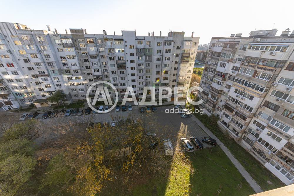 Имотът е в панелна сграда, на висок последен етаж, което осигурява повече тишина, липса на съседи над вас и отлични гледки.