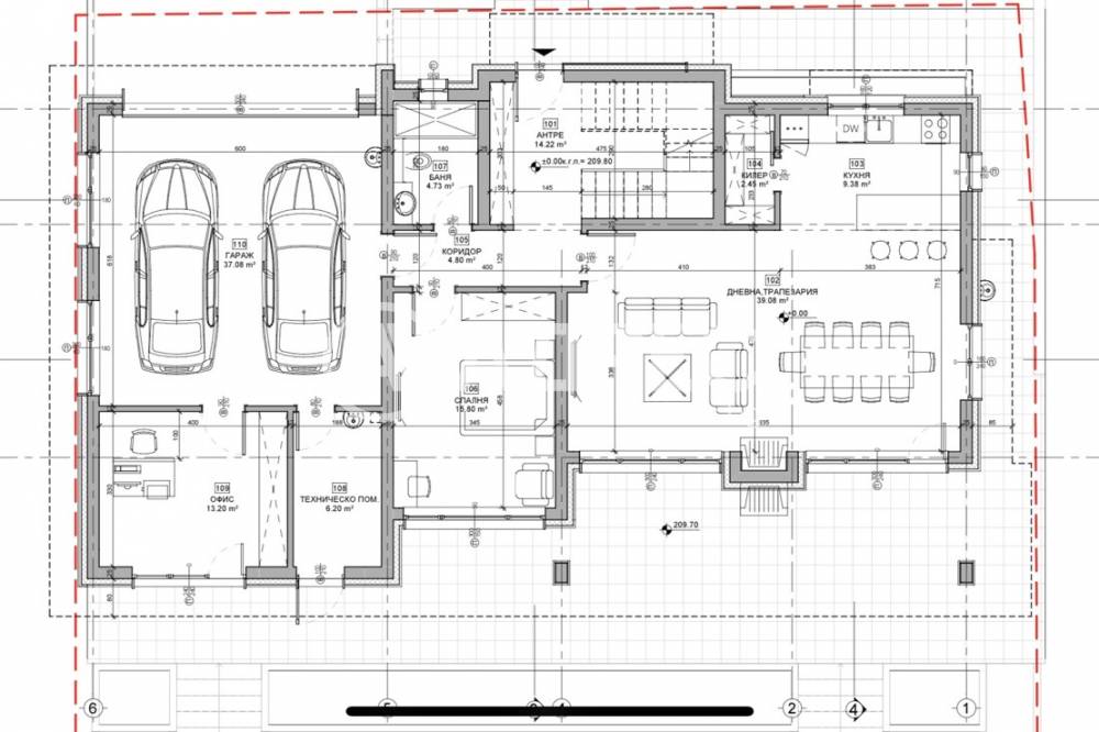 Изложението е И/Ю/З като в посока Север гледат гаража и стълбищната клетка.