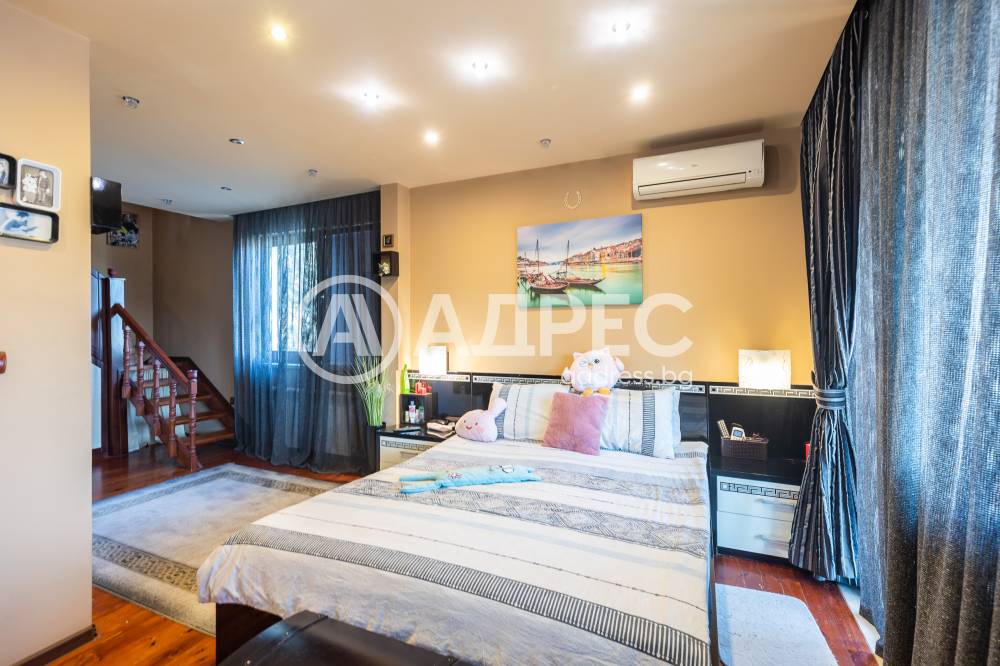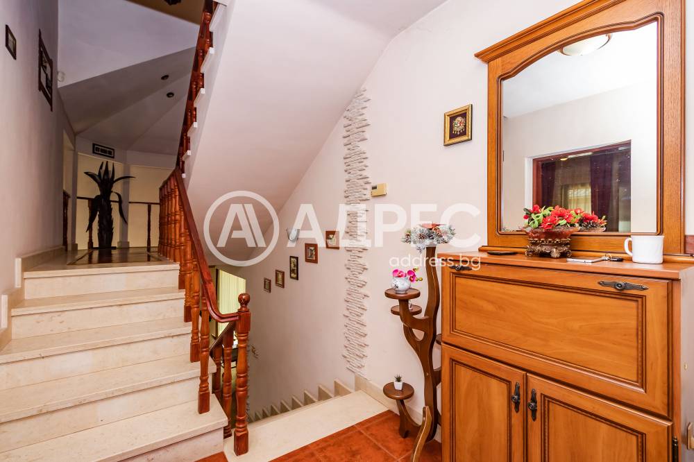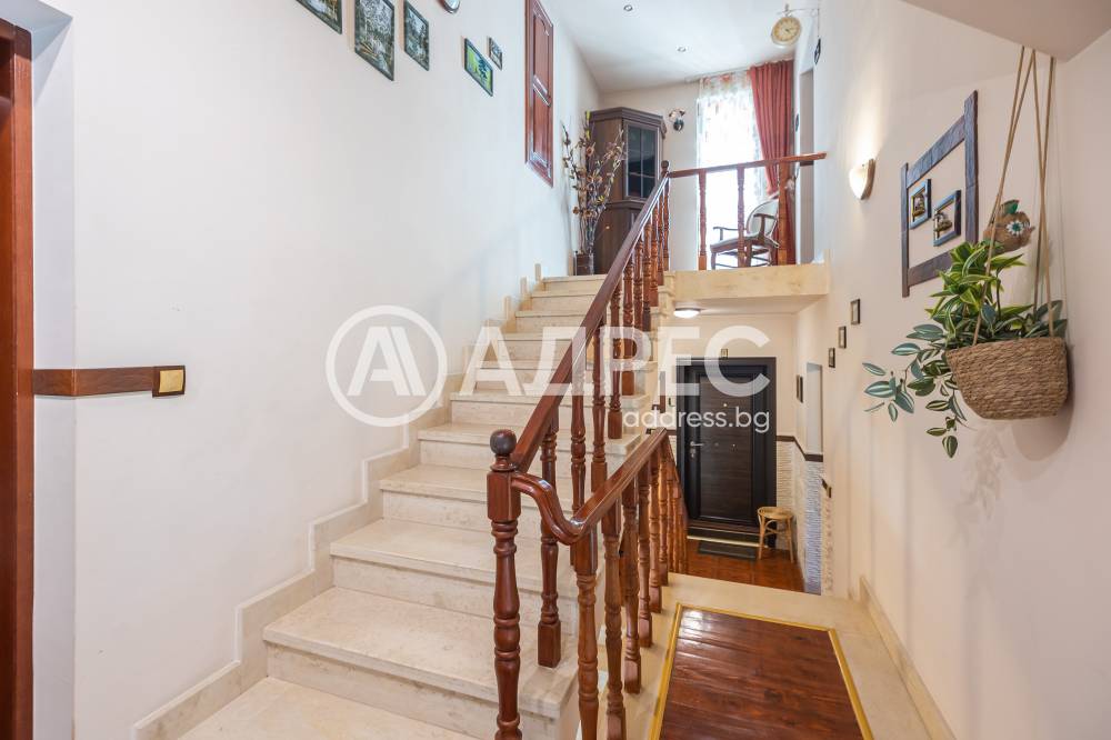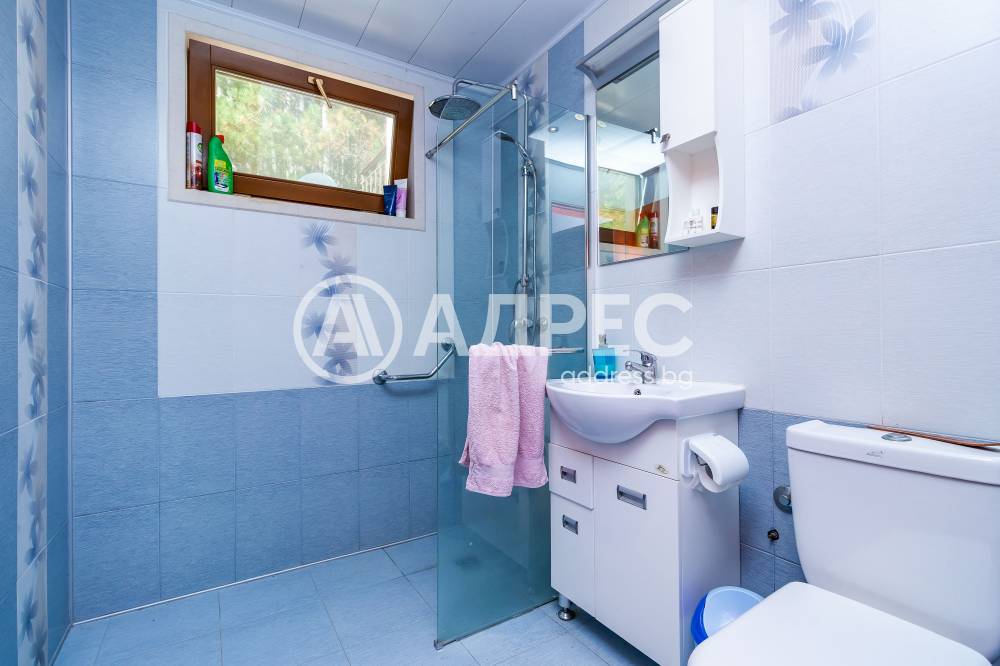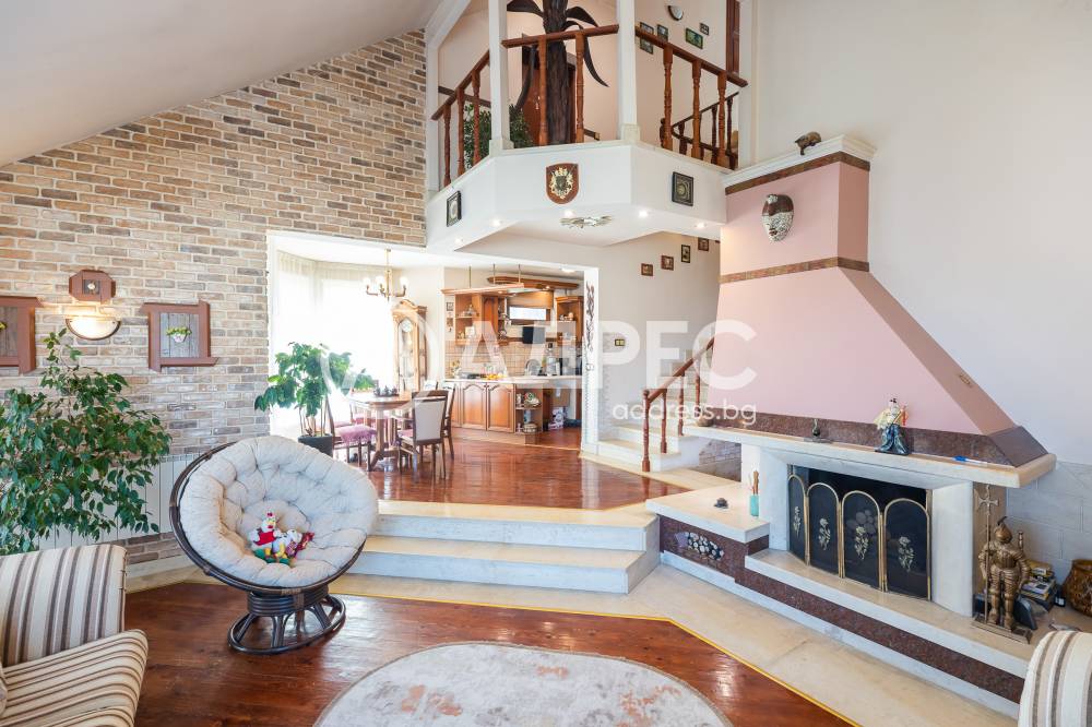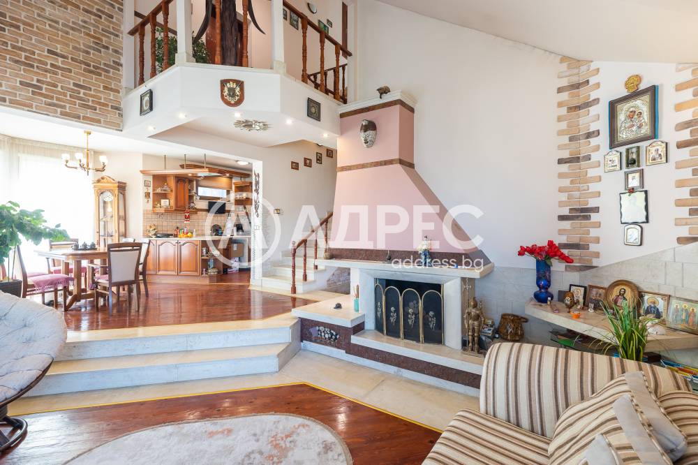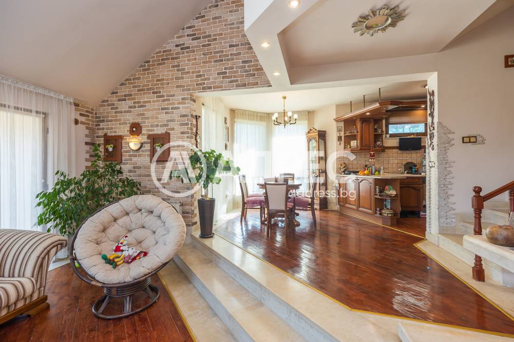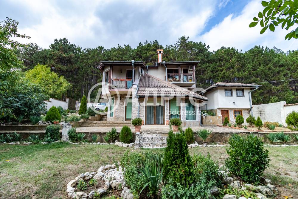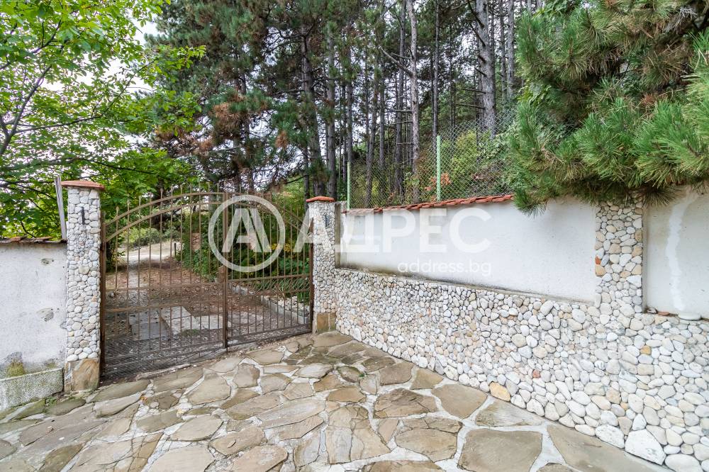 Впечатляващ дом сред невероятната природа, очакващ новите си собственици. Имот с потенциал, подходящ както за семейно жилище, така и за крайградска къща. Трите нива на този изпълнен с въздух и светлина дом са разпределени повече от рационално. Първото ниво започва с просторно антре, от което е и достъпът към основното помещение не само на етажа,но и на цялата сграда – просторната дневна-емпоре. Това помещение е с размерите и излъчването на истинска зала, способна да събере внушително мнозинство от гости. Разполага със светла, просторна и разчупена дневна част, обособени на нива кътове с мека мебел и камина, кухненска част, трапезарна част с изглед към двора. Три спални са самостоятелни, като всяка има отделна баня, изпълнена според изискванията на днешния ден. Отделно санитарно помещения с всички удобства. Голяма покрита тераса с чудесен изглед към морето. Свободно таванско пространство. Къщата се предлага с цялото обзавеждане, мебели и техника.