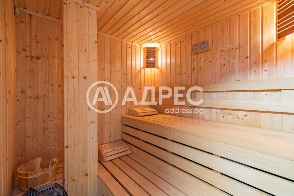 Сауна, двор, паркомясто в двора. Градината се поддържа от градинар, като таксата е за сметка на СОБСТВЕНИКА. Три климатика и локално парно. В близост има магазин и главният път е на 3 минути пешеходно разстояние.