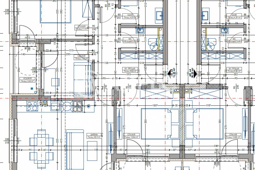 Многостаен слънчев и панорамен апартамент в нова сграда с югозападно изложение. Състои се от дневен тракт, три спални, две тераси, баня с тоалетна, отделно тоалетна и килер. Френски прозорци във всички стаи, осигуряващи максимално естествено осветление и прекрасна гледка. Апартаментът се предлага завършен по БДС. Възможност за покупка на подземно паркомясто.