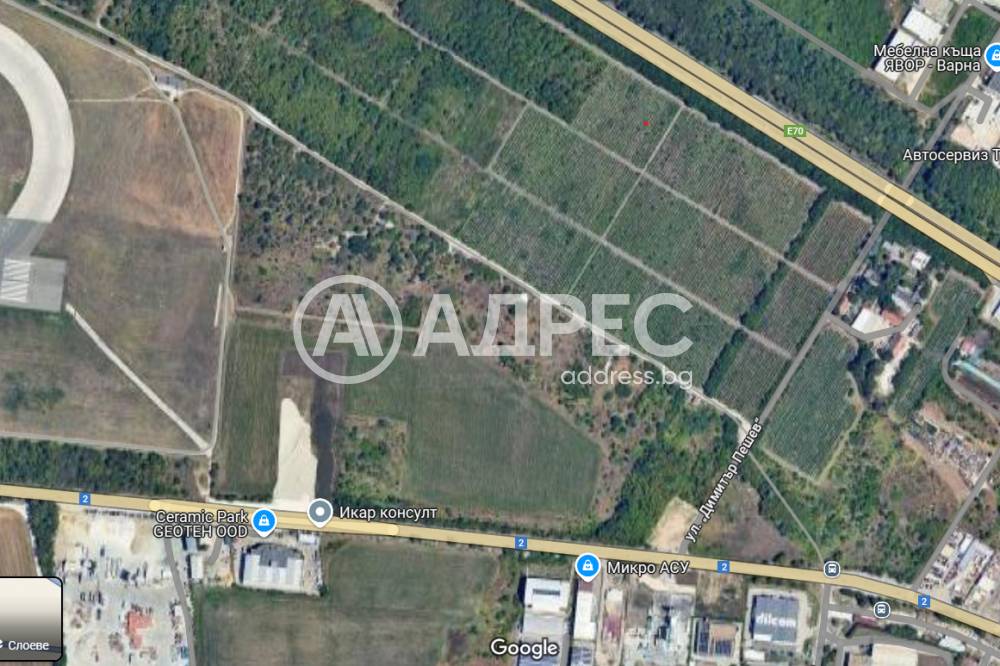Предлагам парцел с площ 8600 кв.м в землището на ж.к. "Владислав Варненчик", местност "Голям пясък". Теренът се намира до летище Варна, 68 метра лице към път, свързващ с ул. "Димитър Пешев". Според действащият ОУП на Община Варна предназначението на имота е: устройствена зона за трайни насаждения, опитни полета на научни институти, разсадници и др. (за сега!).