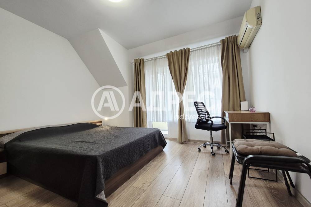Двустаен, обзаведен апартамент в широк център. Състои се от кокетна дневна с кухненска част - бяла техника вкл. съдомиялна, мека мебел, малка тераса. Спалня - напълно обзаведена, просторна тераса. Баня с тоалет.