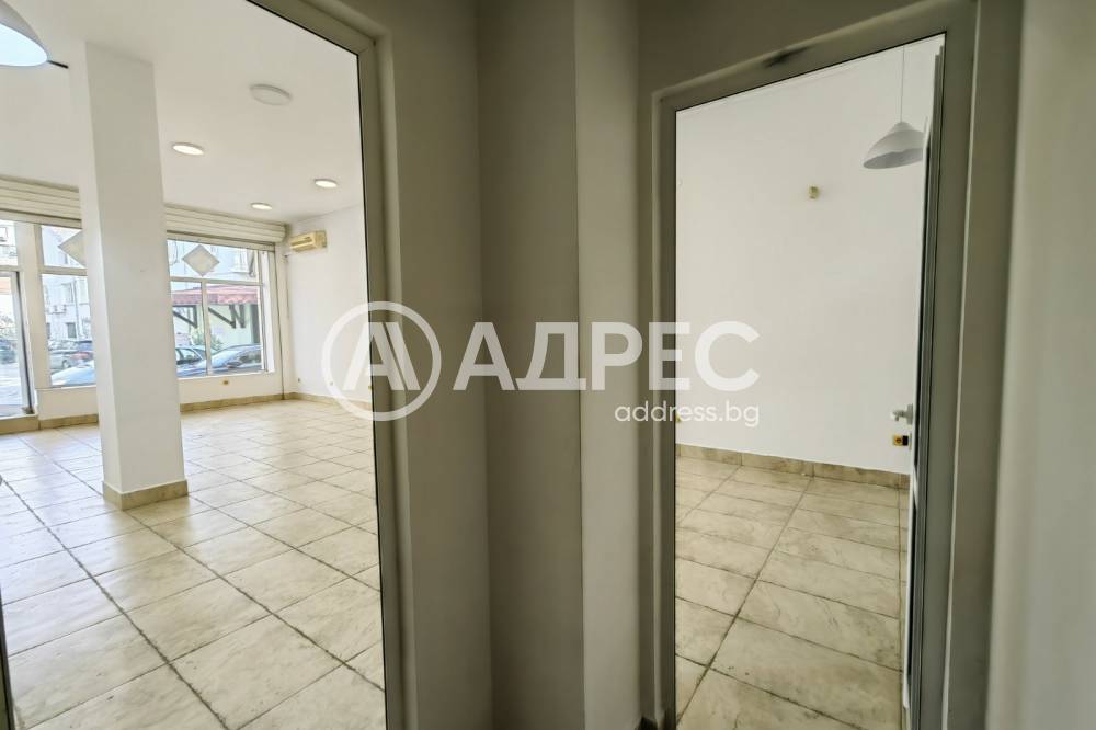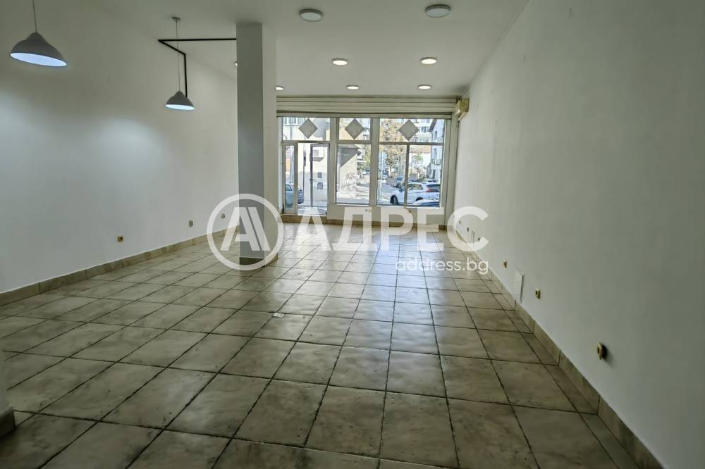 Партерно помещение с лице към улица в близост до ЖП Гара. Състои се от просторна търговска зала 90 мв. м и санитарен възел. Височина - 3.20. Помещението има два входа: към улица и към вътрешен двор. Отопление с климатици, има и ролетна щора и сот. Помещението е подходящо както за магазин, така и за офис, галерия, агенция и пр.