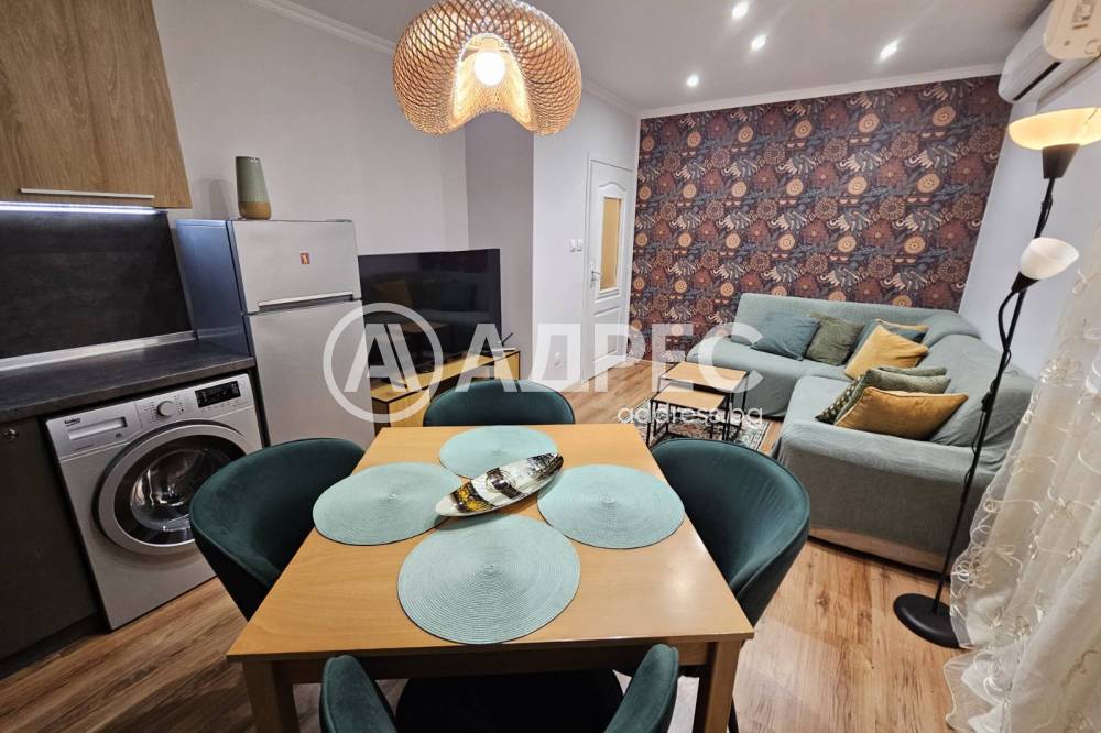 Тристаен апартамент, напълно обзаведен и готов за нанасяне. Състои се от модерна дневна с вградена кухня, семейна спалня, втора спалня/кабинет, баня/тоалет заедно, килер, коридор. От всяка стая има излаз на тераса. Има поставен климатик в дневната.