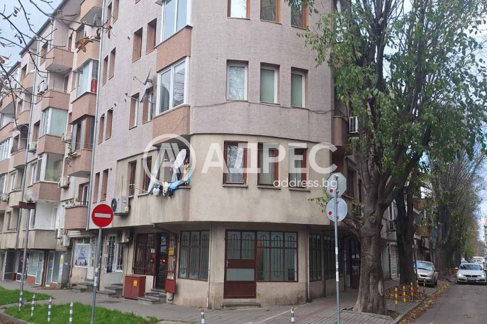 Партерен ъглов магазин с лице на две улици. Имотът се състои от: голяма търговска зала, със складово помещение в сутерена,отделно малко търговско помещение,саниратно помещение.