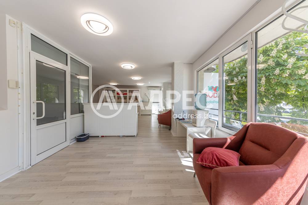 Предлагаме под наем светло и просторно помещение с голяма витрина, санитарен възел и битовка. След основен ремонт. Подходящо е за стоматологичен кабинет, офис, адвокатска кантора и др.