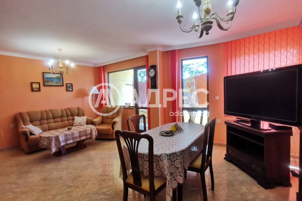 Тристаен, обзаведен апартаметн в района на Зк Тракия. Жилището се състои от просторна дневна с кухненска част - бяла техника, мека мебел, маса за хранене, тераса. Две спални, като едната е с голямо легло, втората с две единични легла. Обща тераса за двете спални. Три климатика, три телевизора. Баня с тоалетна. Не се допускат домашни любимци.