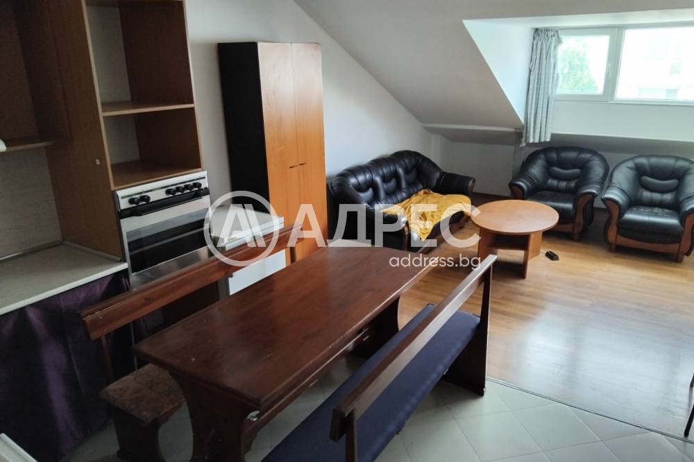 Боксониера. Адрес Недвижими имоти отдава под наем боксониера. Състои се от просторна стая с обособен кухненски кът, баня с тоалетна и входно антре. Апартаментът е с функционално разпределение. В близост се намират магазини, спирки на градски транспорт, училища и зелени площи. Жилището е в добро състояние и е готово за нанасяне.