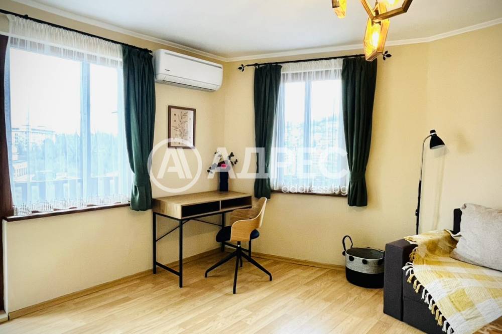 хол, две спални, баня с тоалетна, отделна тоалетна, кухня, две тераси, като от едната се открива прекрасна панорамна гледка към паметника Асеневци и Художествената галерия. Във всяка стая има климатици с Wi-Fi връзка. Към имота принадлежи й 1/2 от партерен етаж, който може да се обособи като студио или гараж.