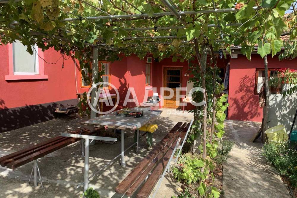 Предлагам къща с двор 2400м2., която се използва и поддържа целогодишно и е в отлично състояние. Разполага с два отделни входа , кухня с трапезария, три просторни спални по 20м2, баня с тоалет, две складови помещения и маза. Към къщата има изградени още три масивни складови помещения и два навеса, масивен двоен гараж