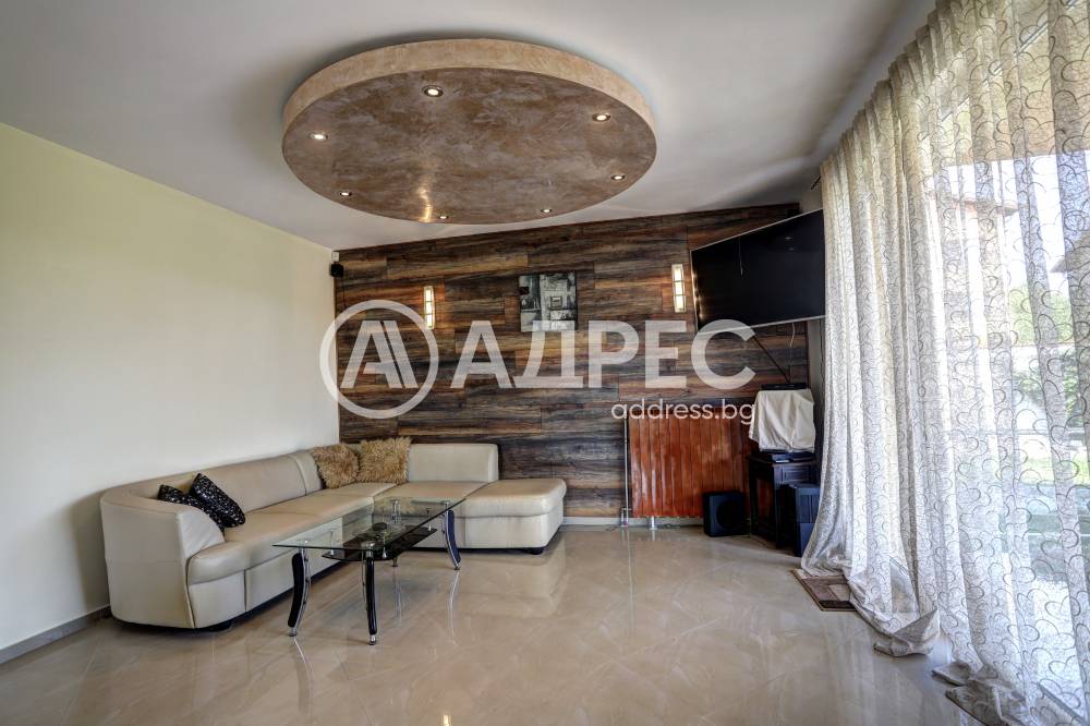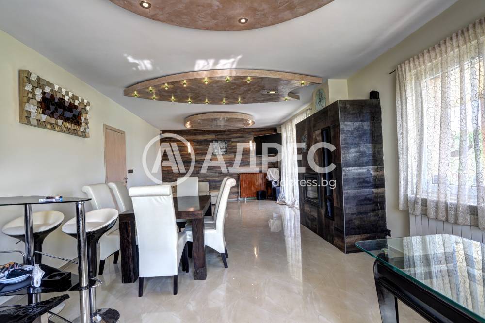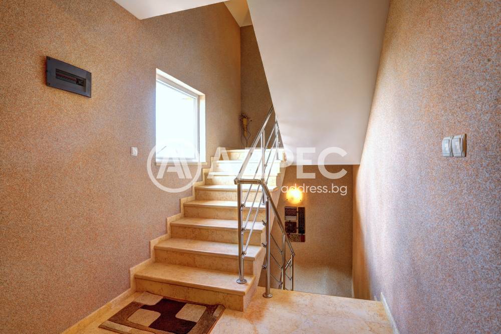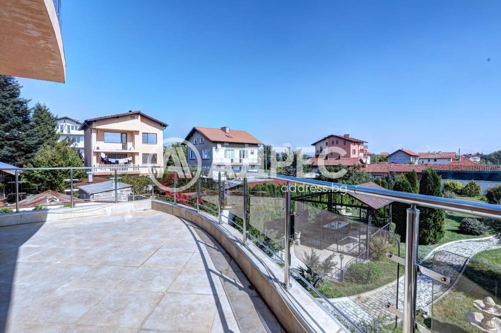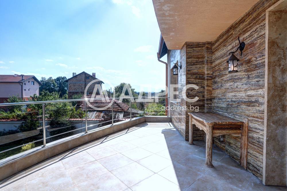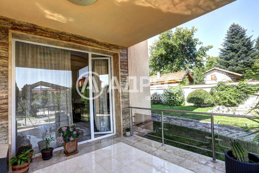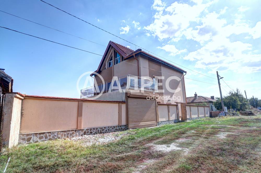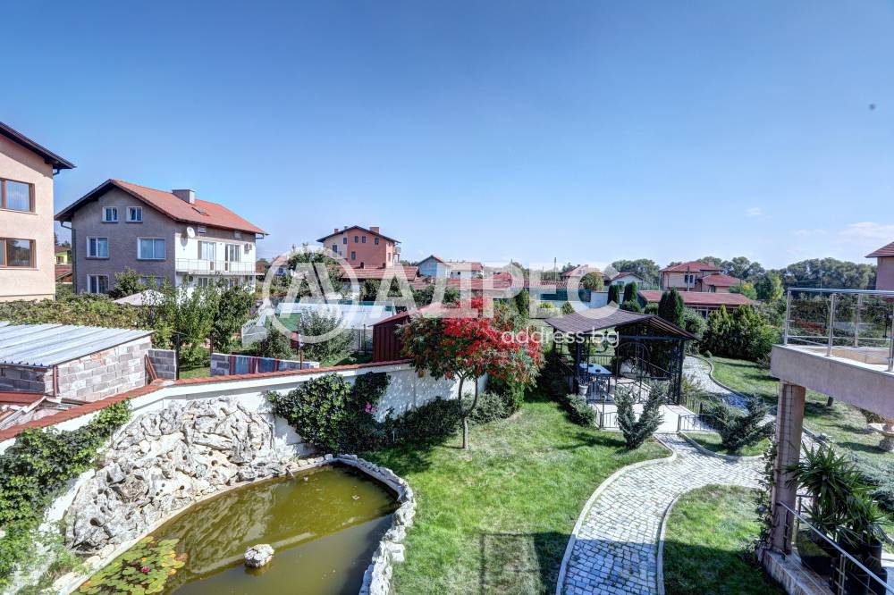 Нова модерна къща с прекрасен двор, в страни от динамиката на големия град и всъщото време близо до него. Разпределението на къщата е съобразено с изискванията за удобство и постигане на максимален комфорт, съчетано със стили високо качество. Партерен етаж: антре, дневна с кухненска част, спалня за гости и баня с тоалетна. Втори етаж: три спални с тераси и две бани, с изложениеюг и изток. Трети етаж: спалня с източна тераса, баня и второ помещение с площ от близо 30 кв.м., в което може да се обособи дрешник и кабинет. Отоплението се осъществява чрез камина с водна риза. Подовете са от египетски мрамор, а стените от минерална мазилка. Изградена е и модерна поливна система.