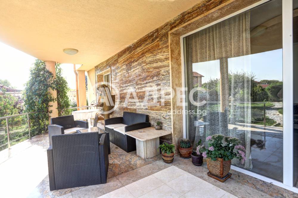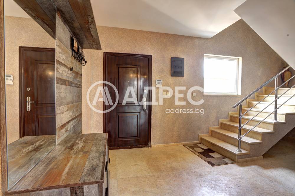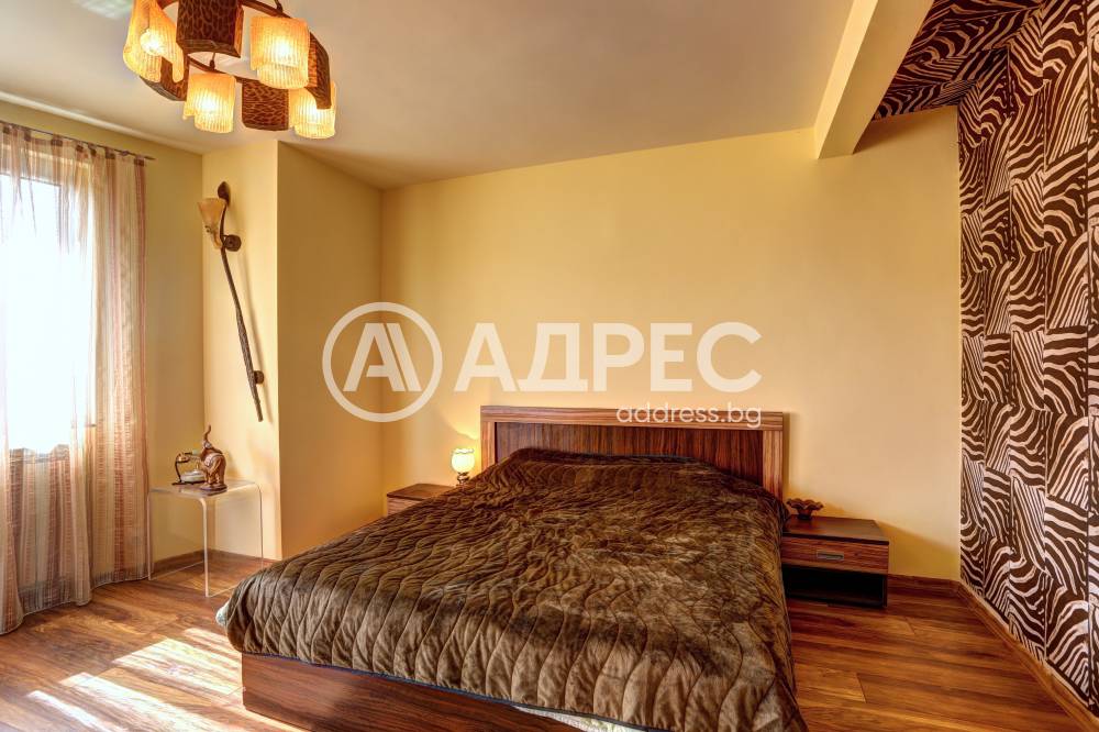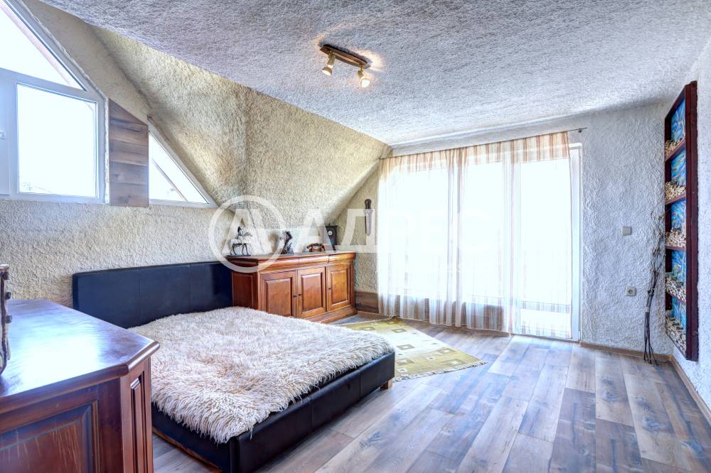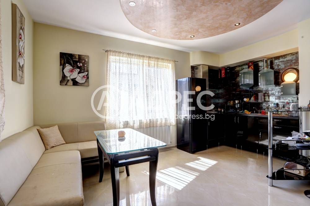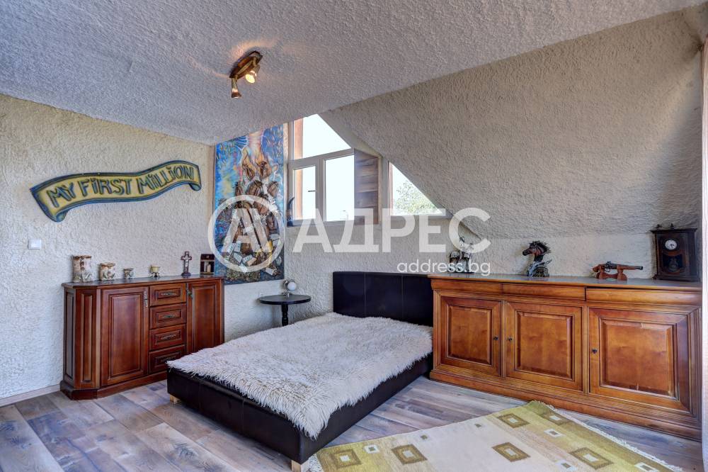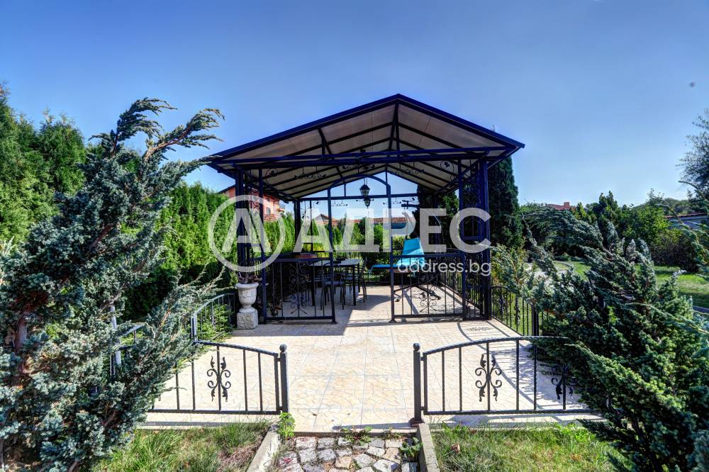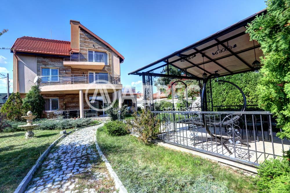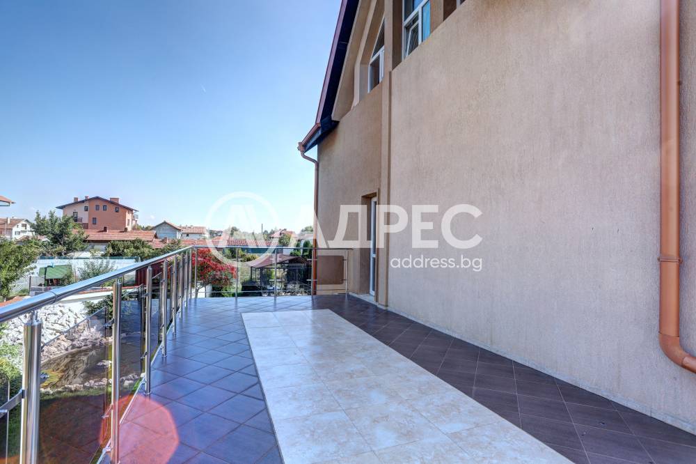 Нова модерна къща с прекрасен двор, в страни от динамиката на големия град и всъщото време близо до него. Разпределението на къщата е съобразено с изискванията за удобство и постигане на максимален комфорт, съчетано със стили високо качество. Партерен етаж: антре, дневна с кухненска част, спалня за гости и баня с тоалетна. Втори етаж: три спални с тераси и две бани, с изложениеюг и изток. Трети етаж: спалня с източна тераса, баня и второ помещение с площ от близо 30 кв.м., в което може да се обособи дрешник и кабинет. Отоплението се осъществява чрез камина с водна риза. Подовете са от египетски мрамор, а стените от минерална мазилка. Изградена е и модерна поливна система.