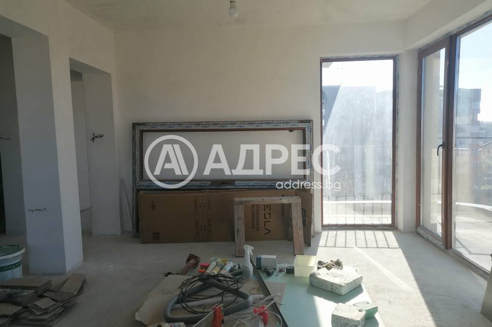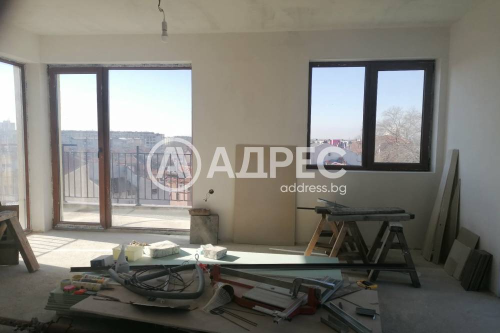 АДРЕС предлага за продажба тристаен апартамент на пети етаж /четвърти жилищен/ с площ от 78кв.м. с общите части, чиста жилищна площ от 66 кв.м. Разпределение на жилището: дневен тракт с кухненски кът, преходна спалня , втора спалня,баня със санитарен възел. Излаз на две тераси. Изложение: юг/запад/изток. Акт 16.
