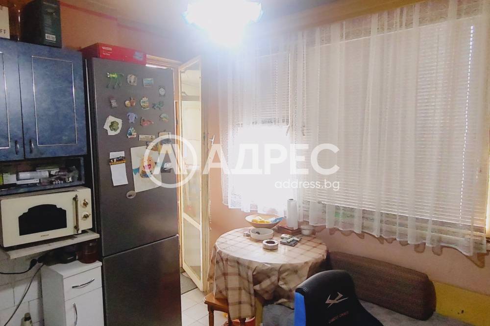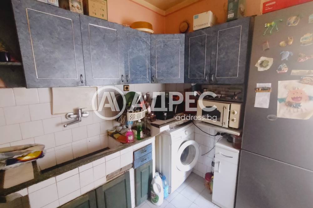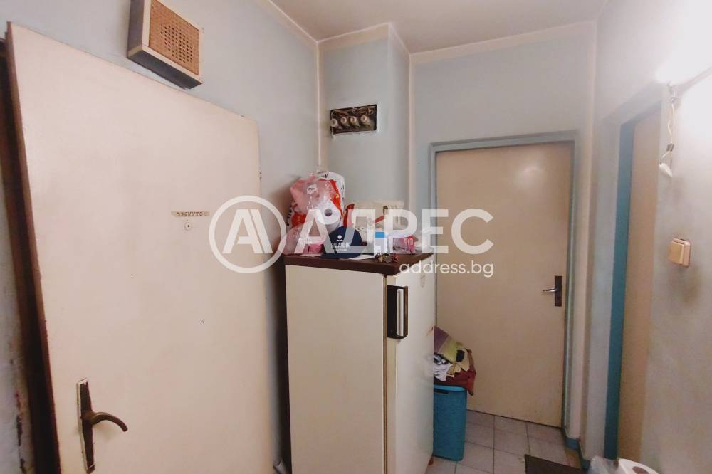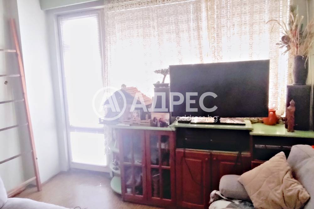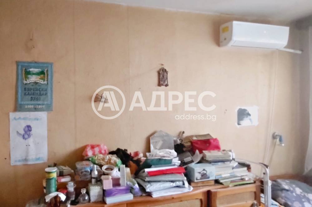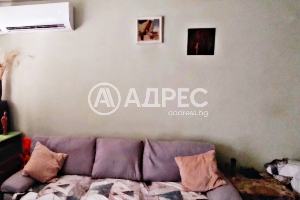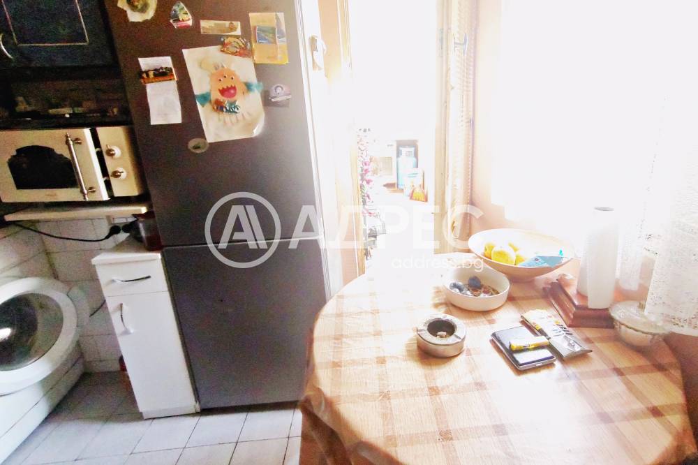 Адрес предлага за продажба ДВУСТАЕН, тухлен апартамент, с площ от 59 кв.м., разположен на първи жилищен етаж. Жилището се състои от хол, спалня, кухня с остъклена тераса, коридор и санитарен възел. Подови настилки - естествен паркет, стени - латекс и тапети. Банята е на фаянс и теракота. Апартаментът може да се преустрои с две спални. Изложение: запад. Прилежащо мазе и таван с площ от по 10 кв.м. Жилището се продава с три климатика и частично обзавеждане.