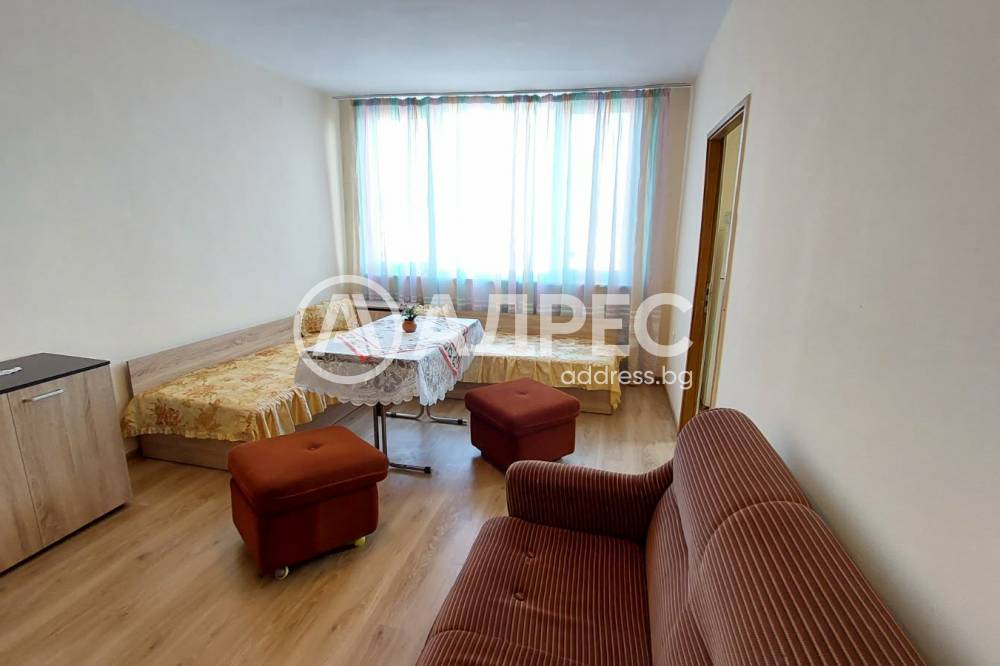 АДРЕС предлага за под наем: Двустаен апартамен, с площ от 65 кв.м., на шести етаж. Жилището се състои от спалня, хол, кухненски бокс, коридор, баня и санитарен възел. Подови настилки - ламиниран паркет, стени - латекс. Дограма- ПВЦ. Апартаментът се отдава обзаведен и оборудван.