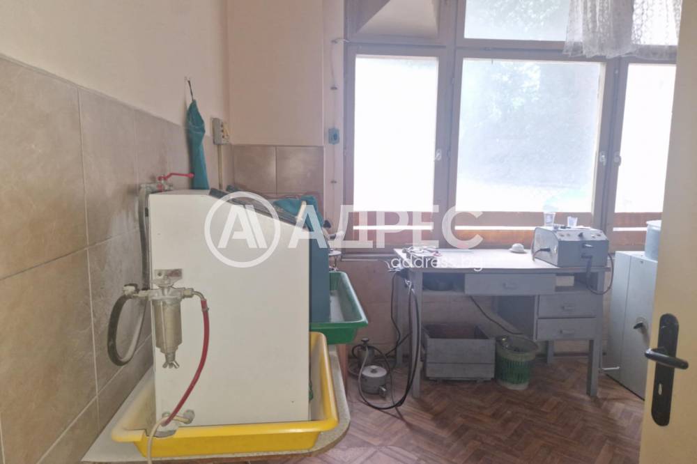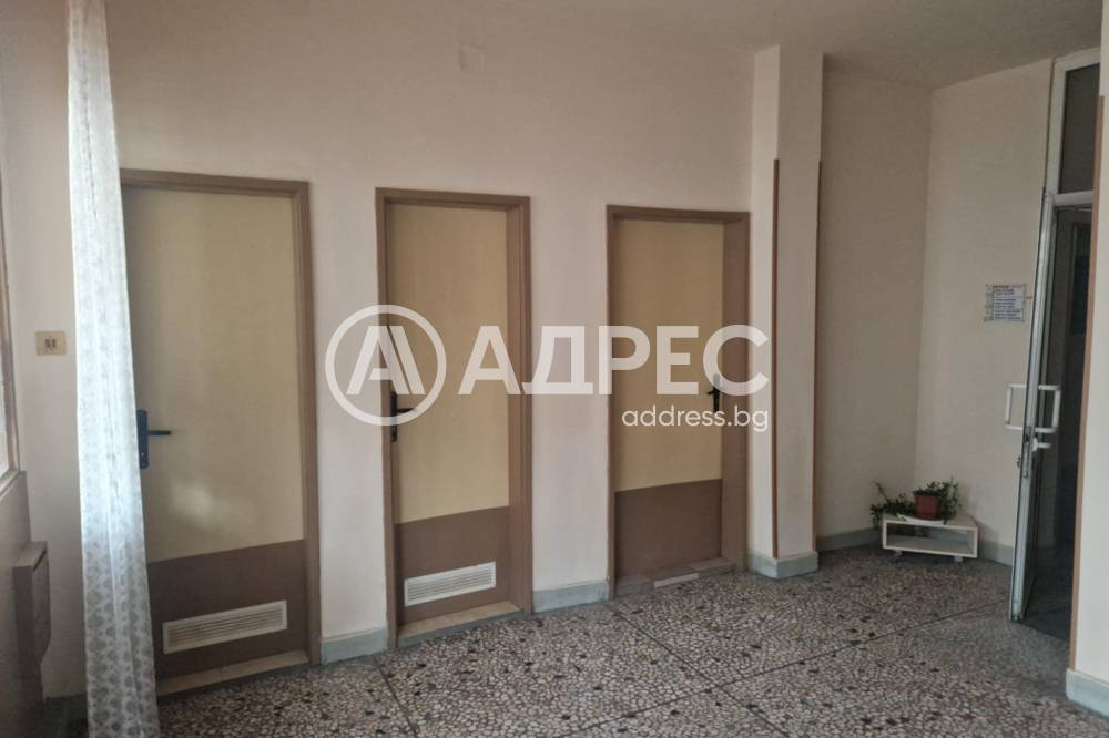 АДРЕС продава: Голямо помещение на партерно ниво със статут на офис, кабинет с площ от 255,25 кв.м. и голямо лице към главен булевард на града. Състои се от девет стаи, един склад и два санитарни възела. Помещението е в много добро състояние. Има трифазен ток. Изключително е подходящо за лекарски кабинети и офиси, тъй като е разделено на стаи и има широк коридор, подходящ за чакалня.Също така вътрешнит стни не са носещи и може да се преустрои на магазин. Има самостоятелен вход.