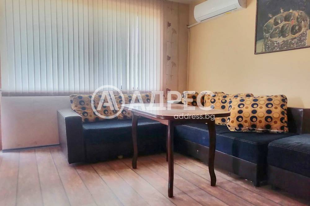АДРЕС продава: Тристаен, тухлен апартамент с площ от 90 кв. м. Жилището е обзаведено и оборудвано. Имотът се състои от хол с преходна спалня с две дълги тераси, втора спалня с тераса, кухня и коридор с вграден гардероб и голям санитарен възел. Подовите настилки са гранитогрес, ламиниран и естествен паркет. Стени с латекс и тапети. Санитарен възел с фаянс, теракота и душ-кабина. Частично сменена дограма, външни ролетни и вътрешни вертикални щори. Към апартаментът има мазе около 16 кв. м. Жилището е с локално парно.