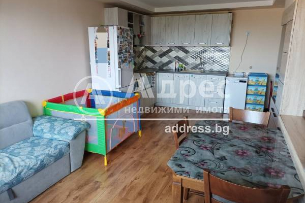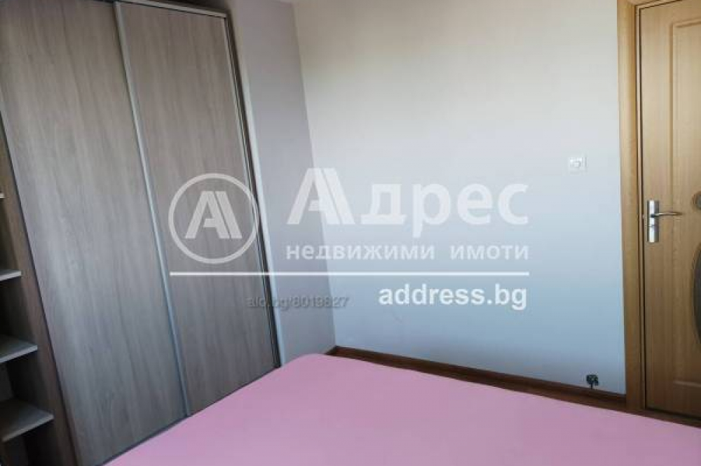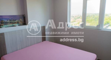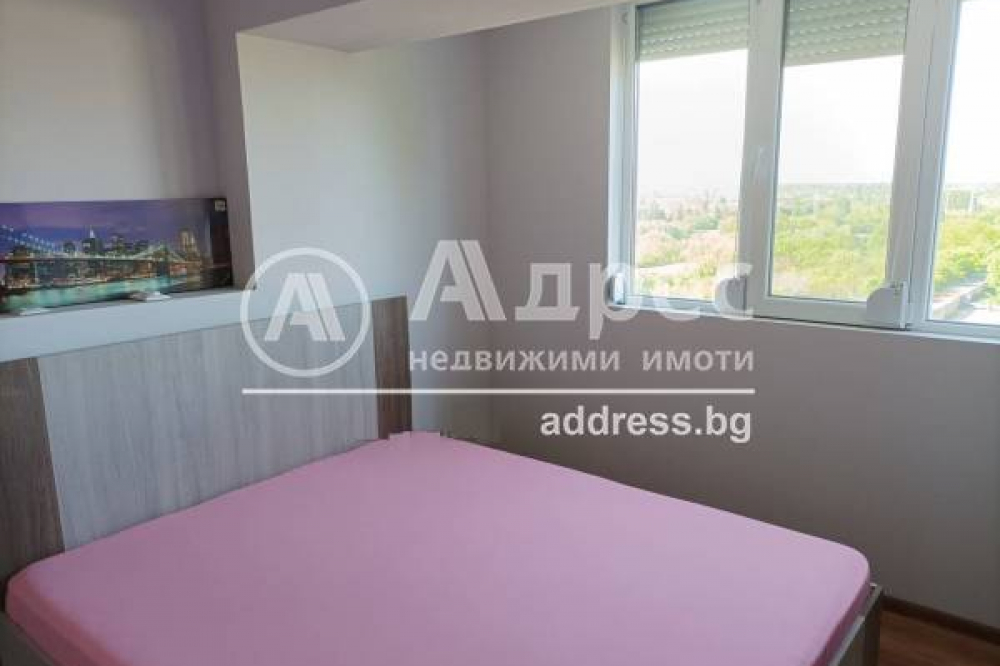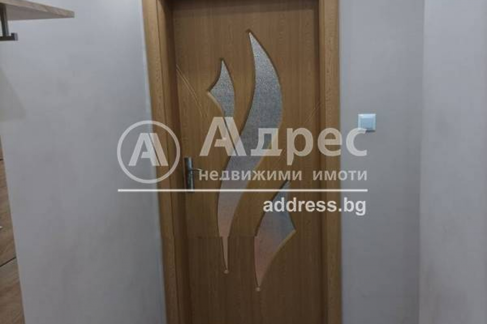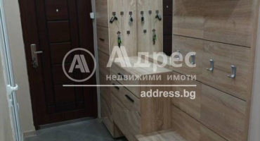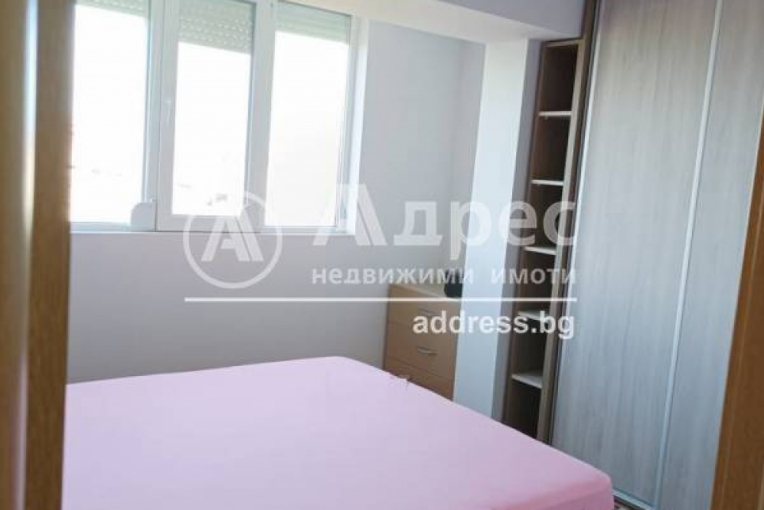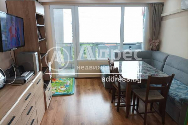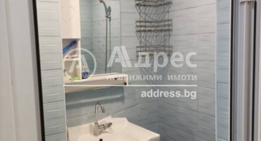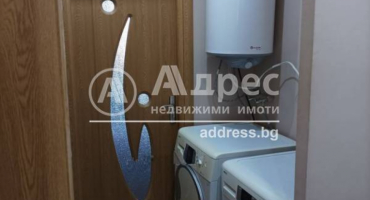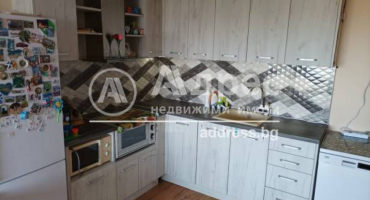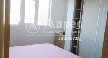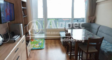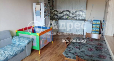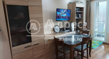 Двустаен апартамент в панелен блок, с площ от 61 кв.м., на осми последен етаж. Жилището е с много добро състояние. Състои се от трапезария с тераса, две спални, коридор и общ санитарен възел. Подови настилки - ламиниран паркет, стени - латекс. Санитарно помещение на фаянс и теракота. Дограма - PVC. Юг/север изложение. Прилежащо мазе.