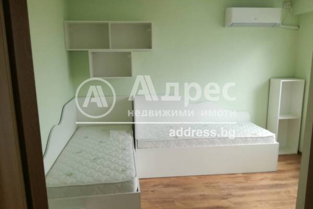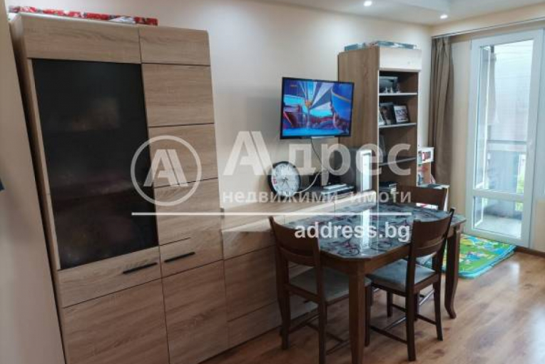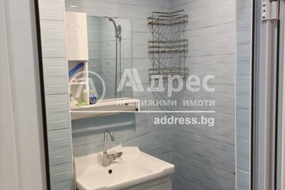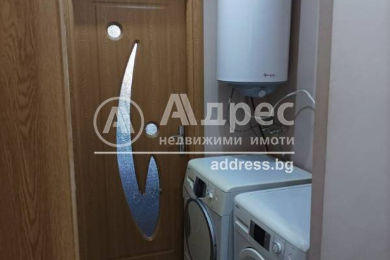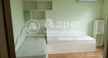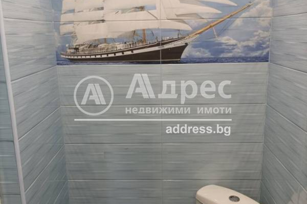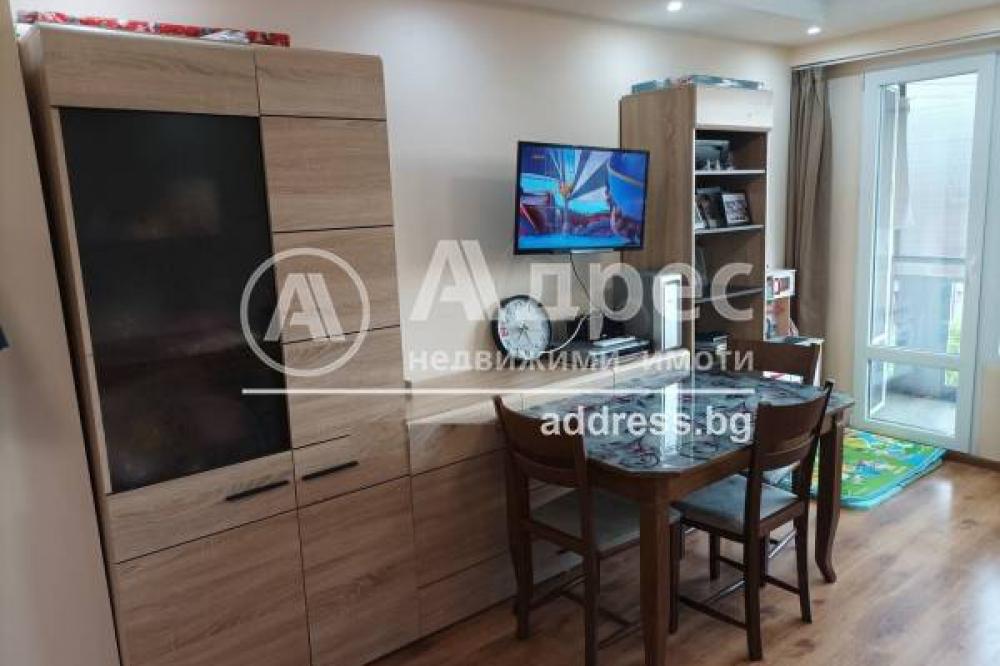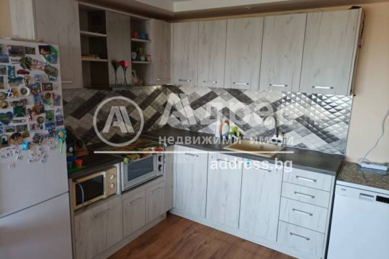 Двустаен апартамент в панелен блок, с площ от 61 кв.м., на осми последен етаж. Жилището е с много добро състояние. Състои се от трапезария с тераса, две спални, коридор и общ санитарен възел. Подови настилки - ламиниран паркет, стени - латекс. Санитарно помещение на фаянс и теракота. Дограма - PVC. Юг/север изложение. Прилежащо мазе.