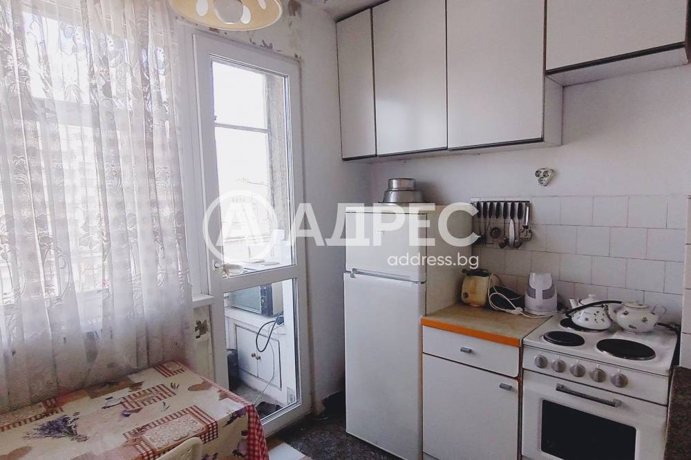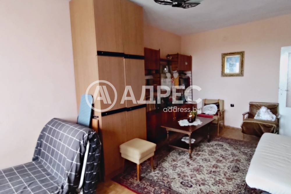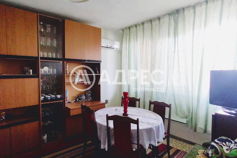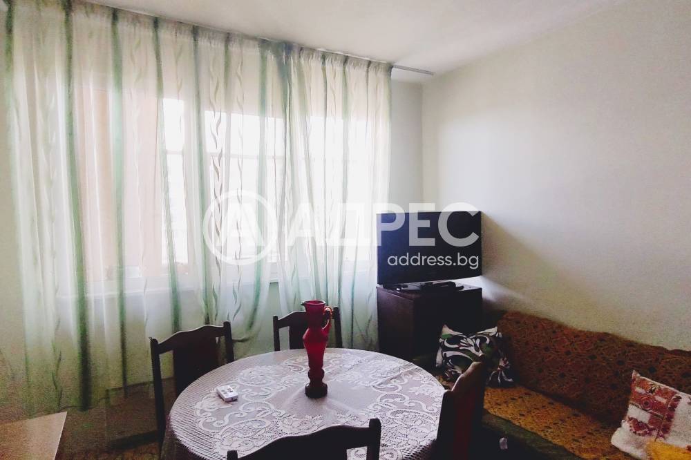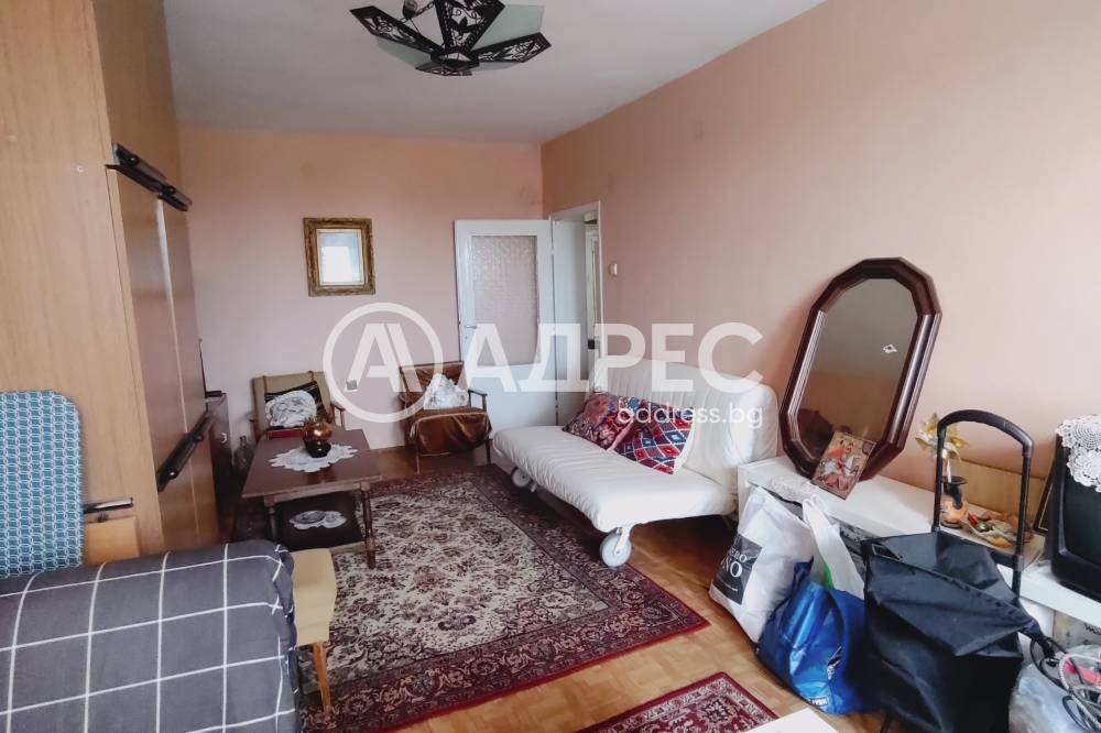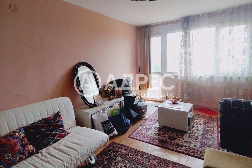 АДРЕС предлага за продажба просторен ДВУСТАЕН АПАРТАМЕНТ, с площ от 64,60 кв.м., разположен на шести етаж. Жилището се състои от хол, спалня, кухня, коридор и санитарен възел. Тераса на хола и обща на кухнята и спалнята. Стаите са с латекс на стените, естествен паркет и мокет на пода. Прозорците са сменена дограма Trocal. Санитарният възел е на фаянс и теракот. Продава се с наличното обзавеждане. Има нужда от освежителен ремонт. Изложението е север/юг.
