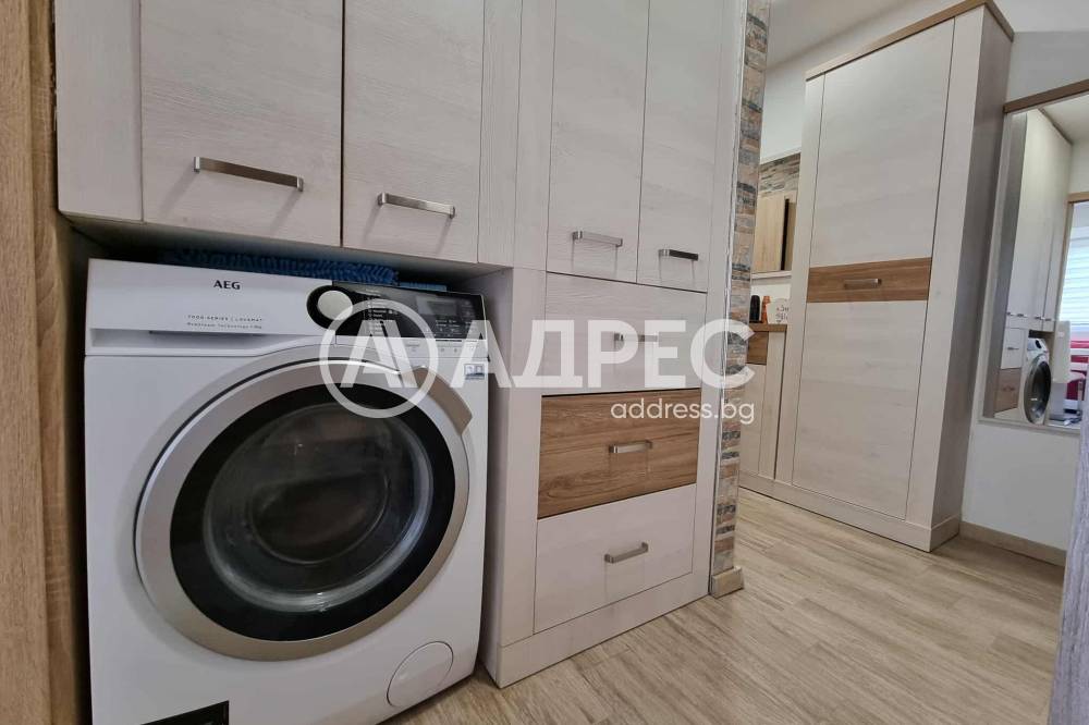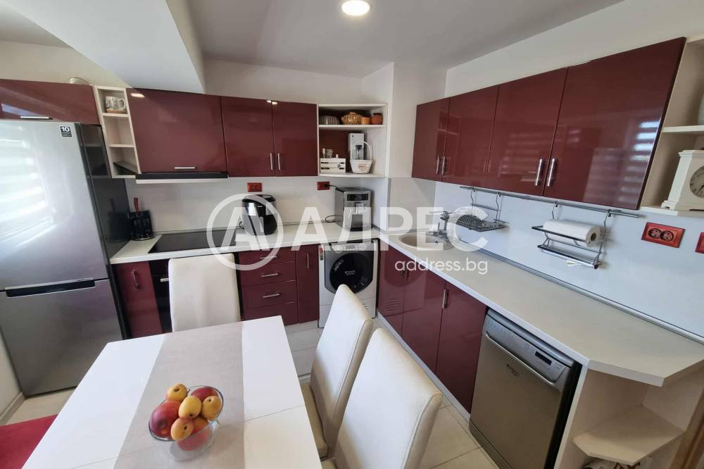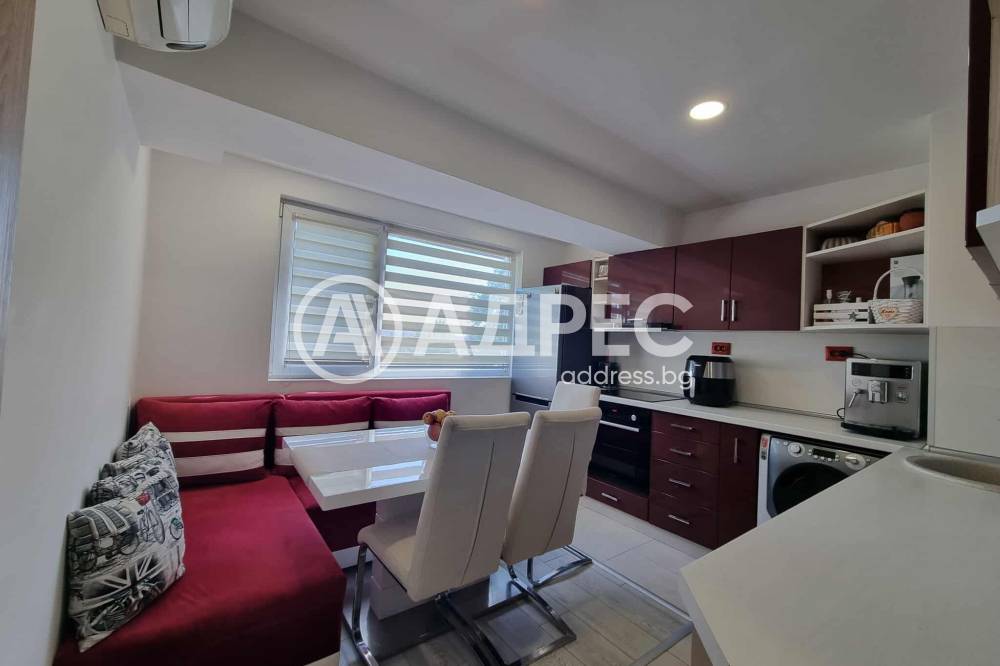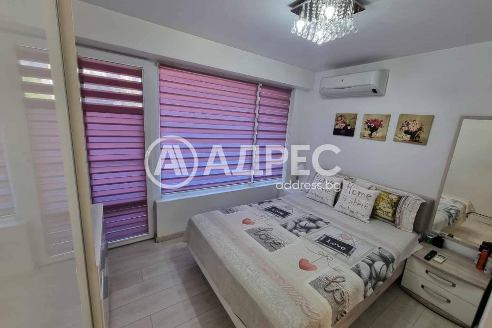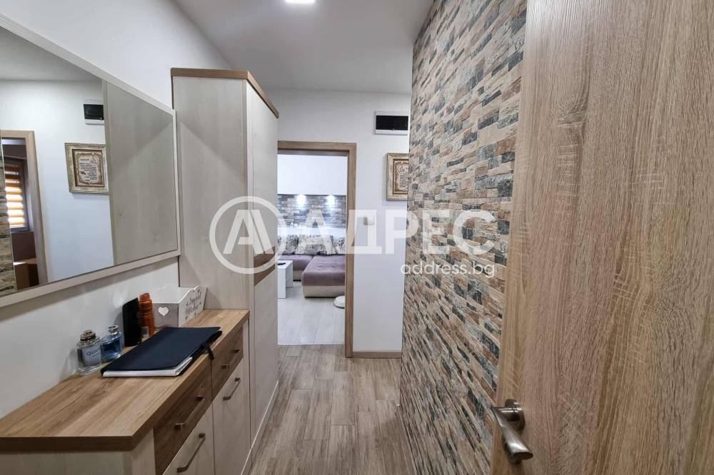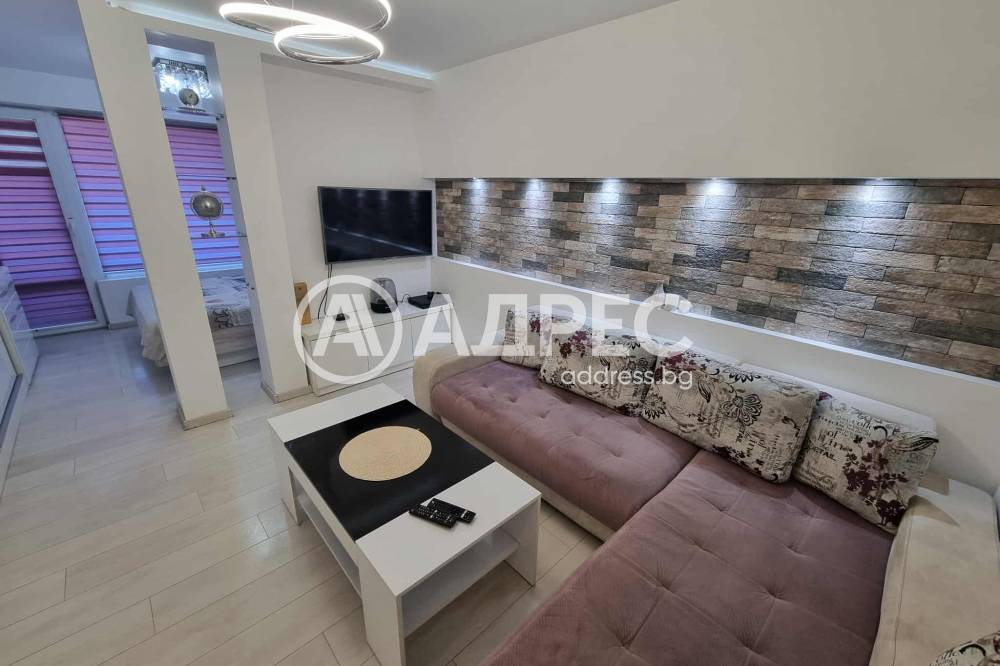 "АДРЕС" Предлага за продажба стилен двустаен апартамент, с площ от 58 кв.м., разположен на трети етаж в панелна сграда. Жилището се състои от хол в който са обособени две зони-зона за отдих с мека мебел и спалня, втора спалня, кухня с усвоена тераса, коридор и баня с тоалетна. Изцяло ремонтиран и реновиран апартамент, с висококачствени материали и елементи. Продава се напълно обзаведено и оборудвано. Отоплява се посредством три климатика монтирани във всяка от стаите. Подовите настилки са ламиниран паркет и теракота, стените са шпакловани и боядисани с латекс, като коридора е облепен с декоративен камък. Изложението на апартамента е север-юг. Прилежащо мазе.